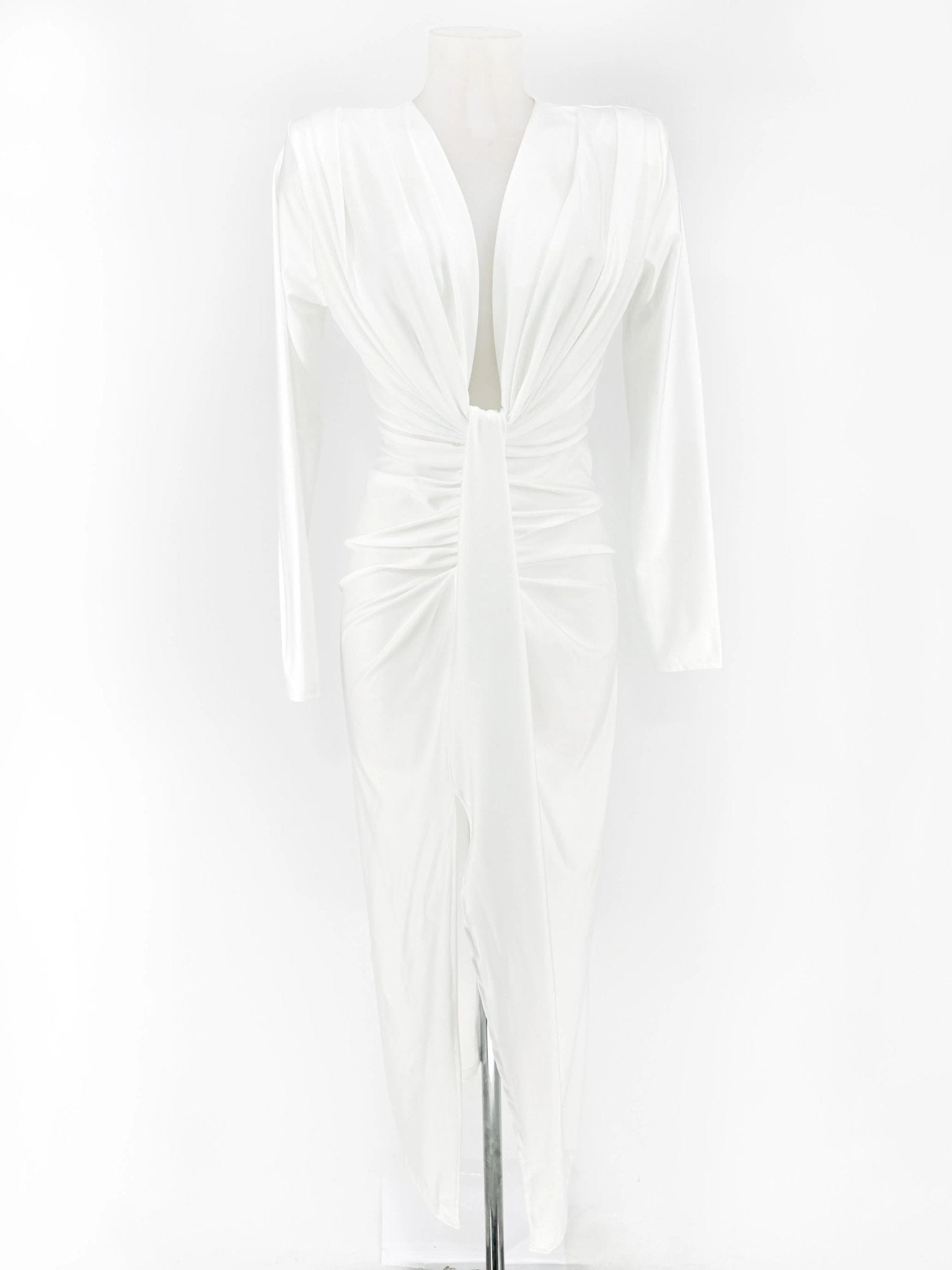 El Vestido Anitta Manga Blanco es una prenda elegante y sofisticada, confeccionada en elastham satinado. Su diseño presenta un escote pronunciado que realza la figura, aportando un toque de sensualidad.