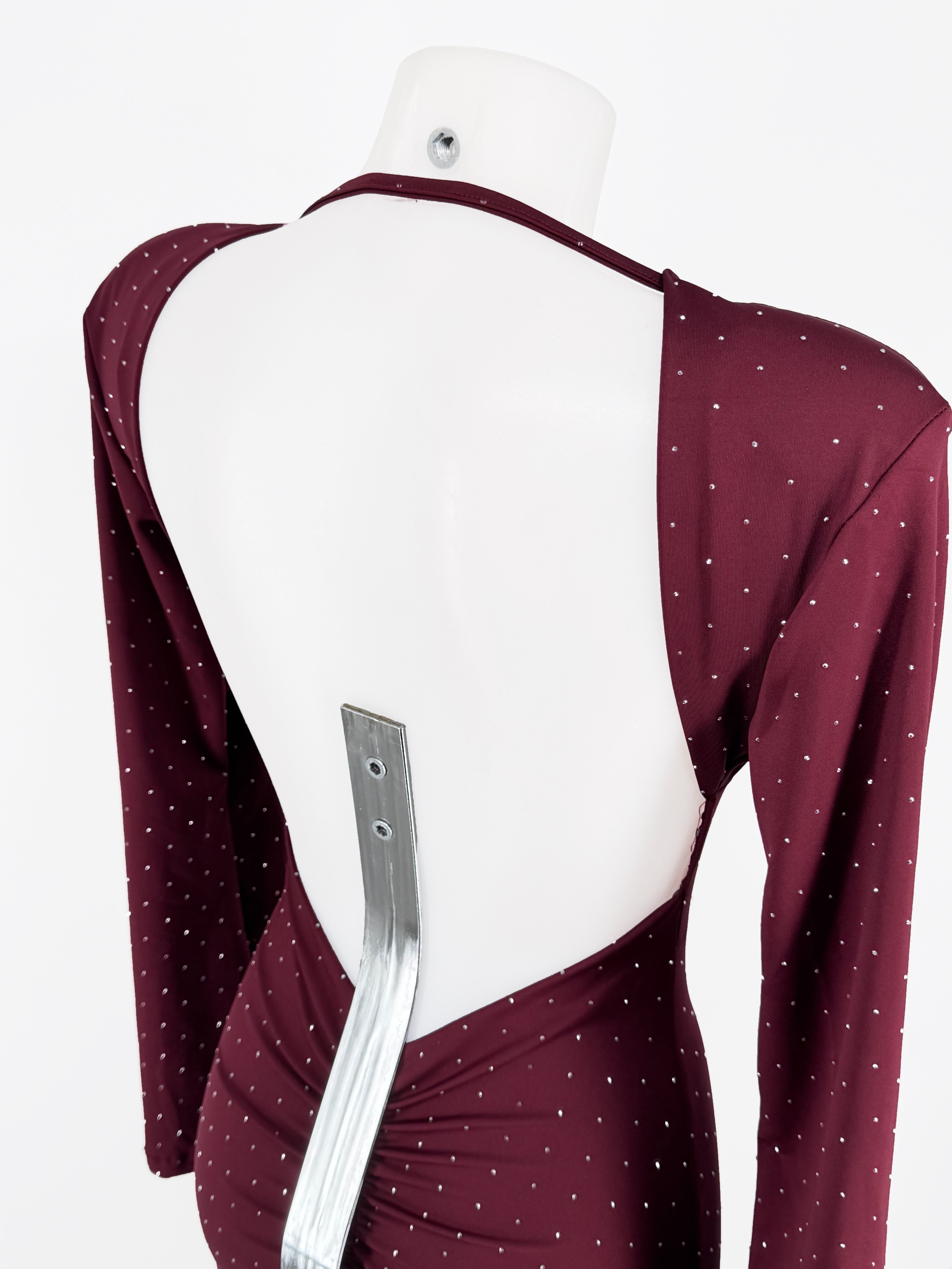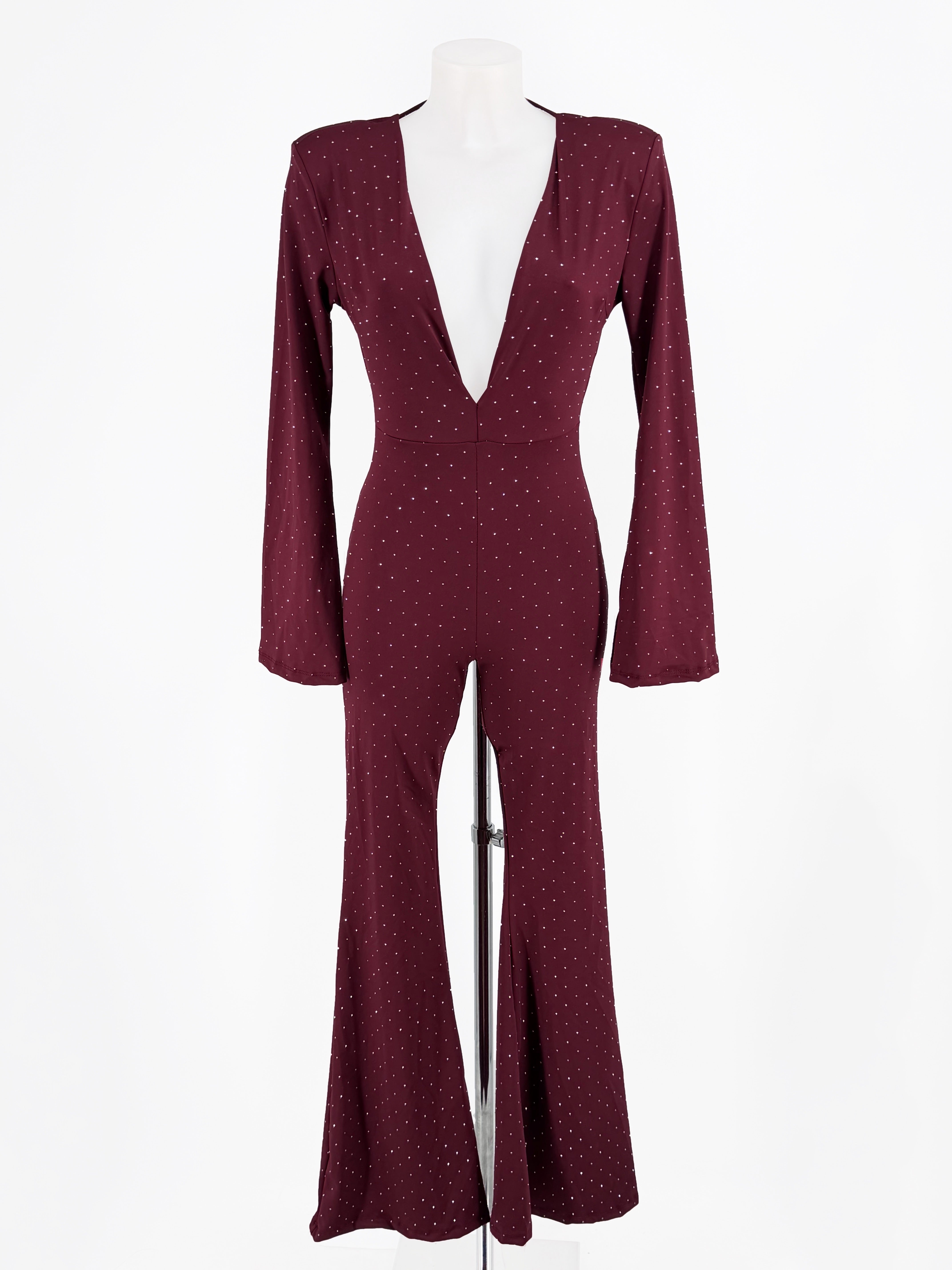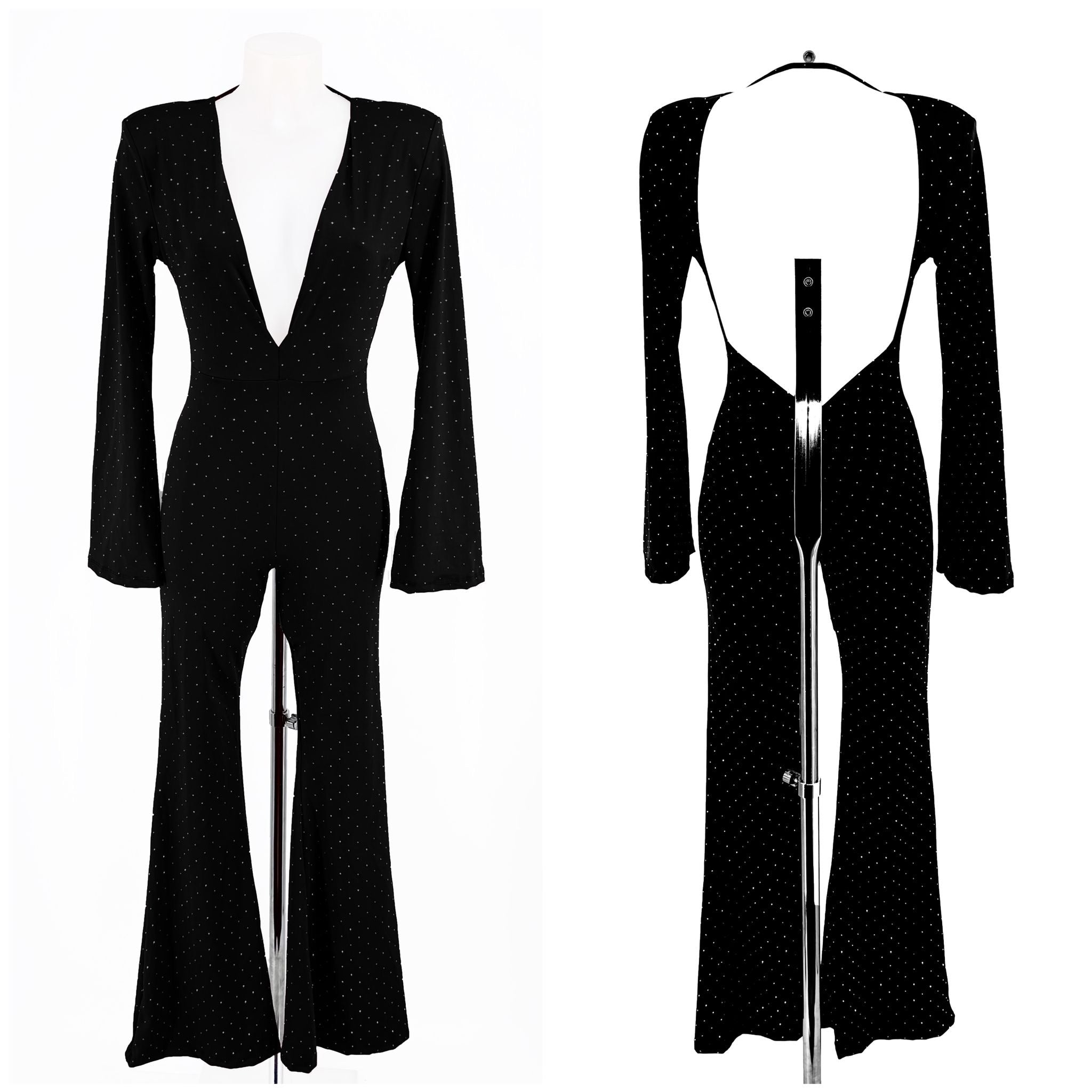Mono de elastham con tachas diamante, pantalón y mangas campana y espalda al aire