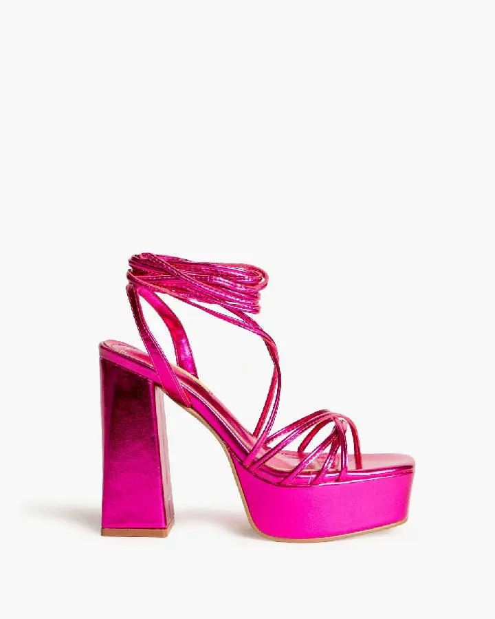 Las cuerdas al tobillo añaden un toque moderno y ajustable, mientras que la plataforma delantera proporciona un soporte adicional. Estas sandalias son ideales para cualquier ocasión, desde una salida casual hasta un evento especial.