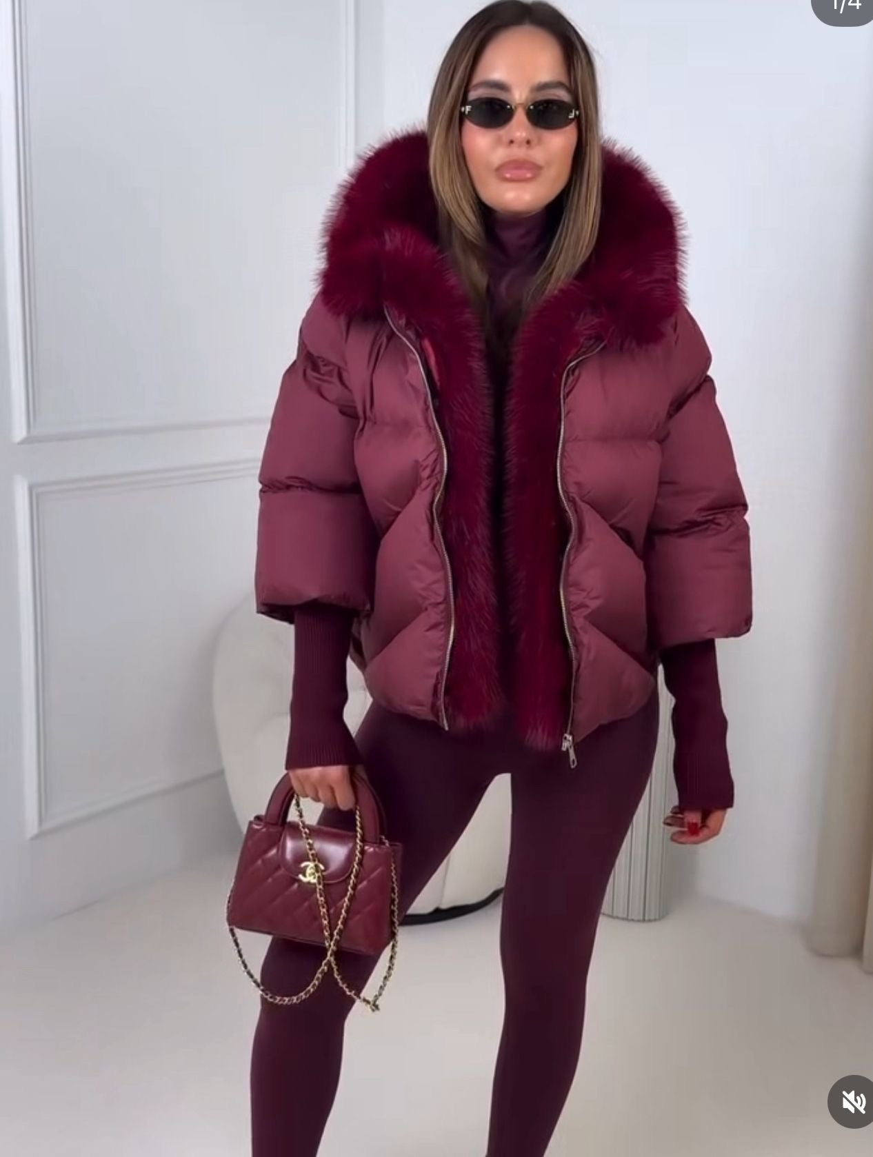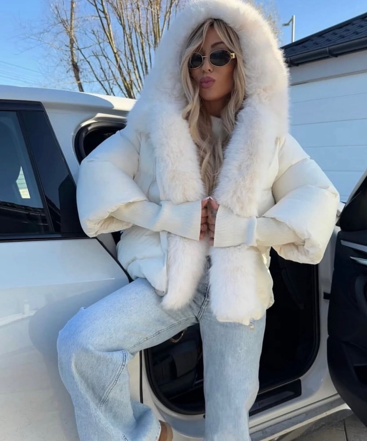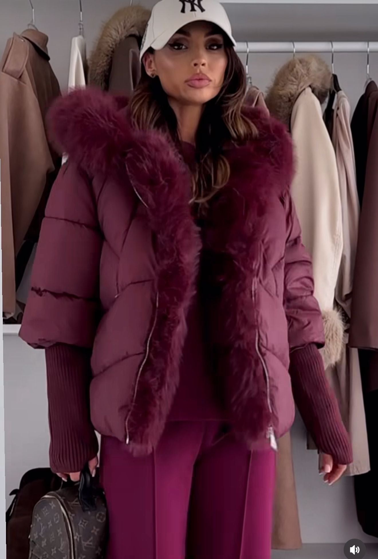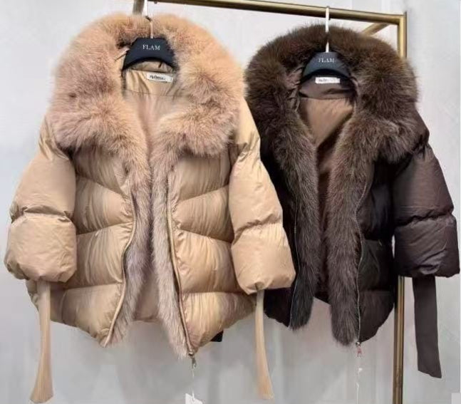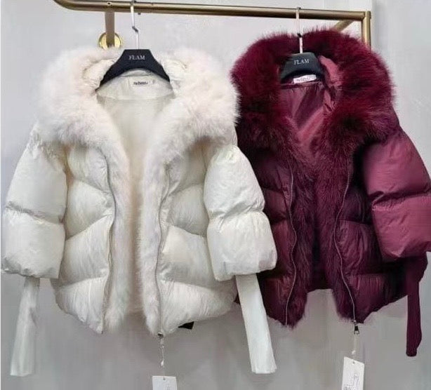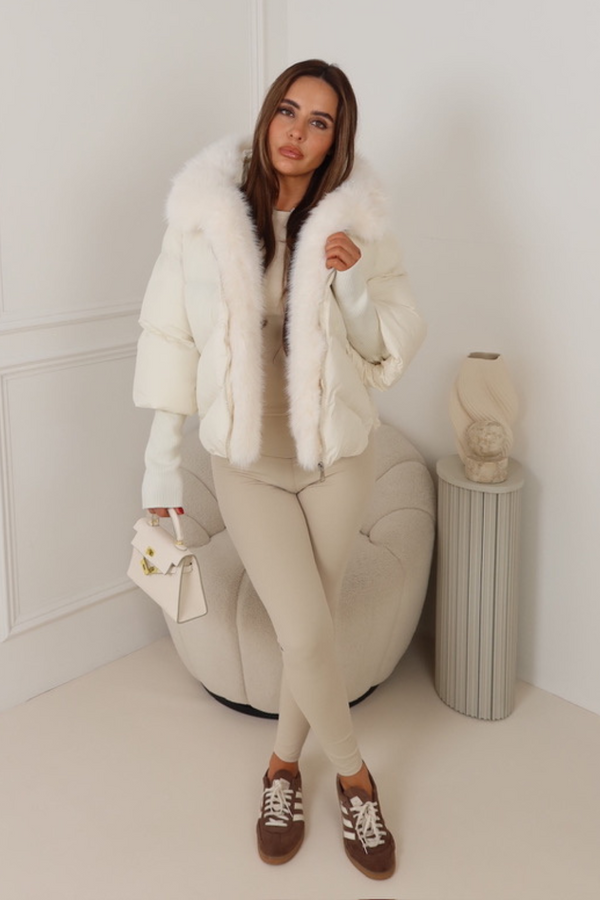 Abrigo plumífero con puños engomados y capucha de pelito