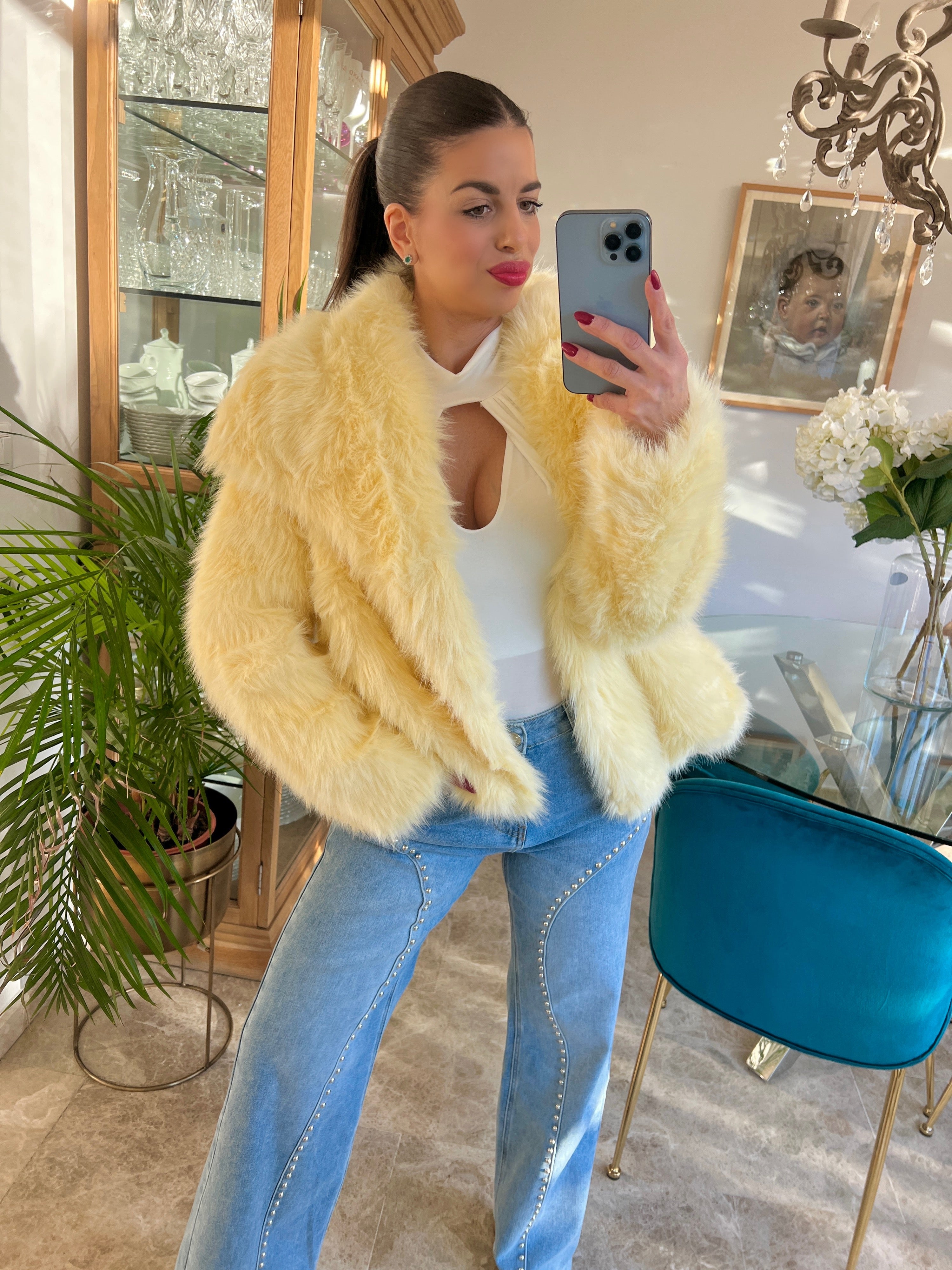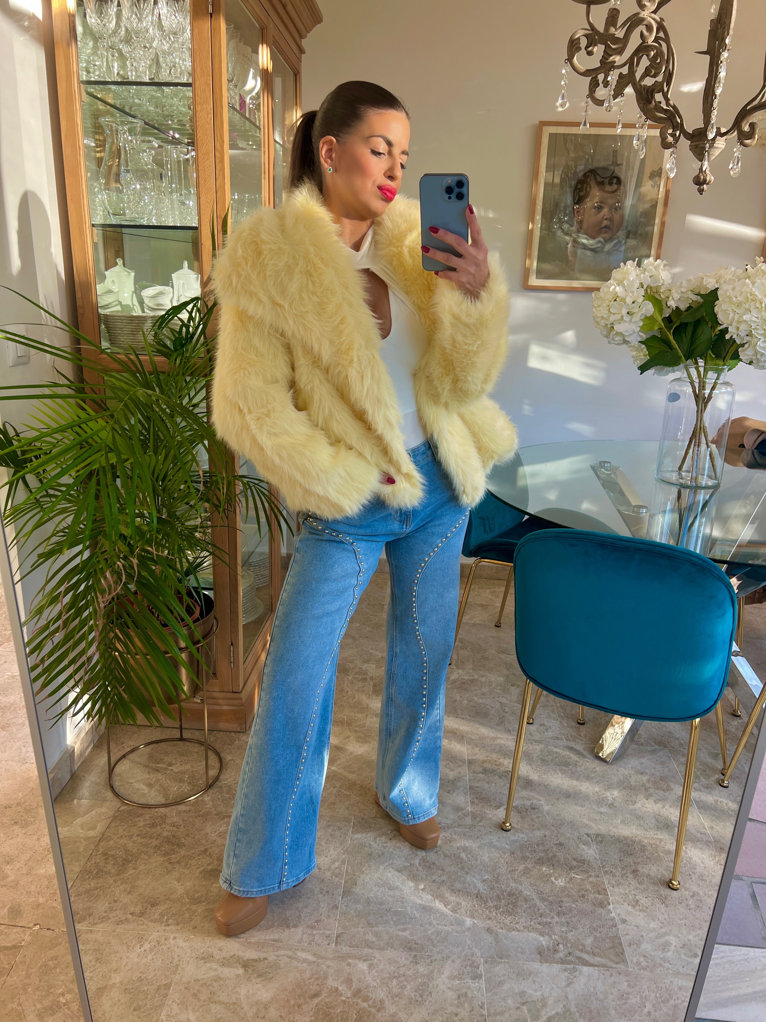 Abrigo de pelito suave con grandes solapas