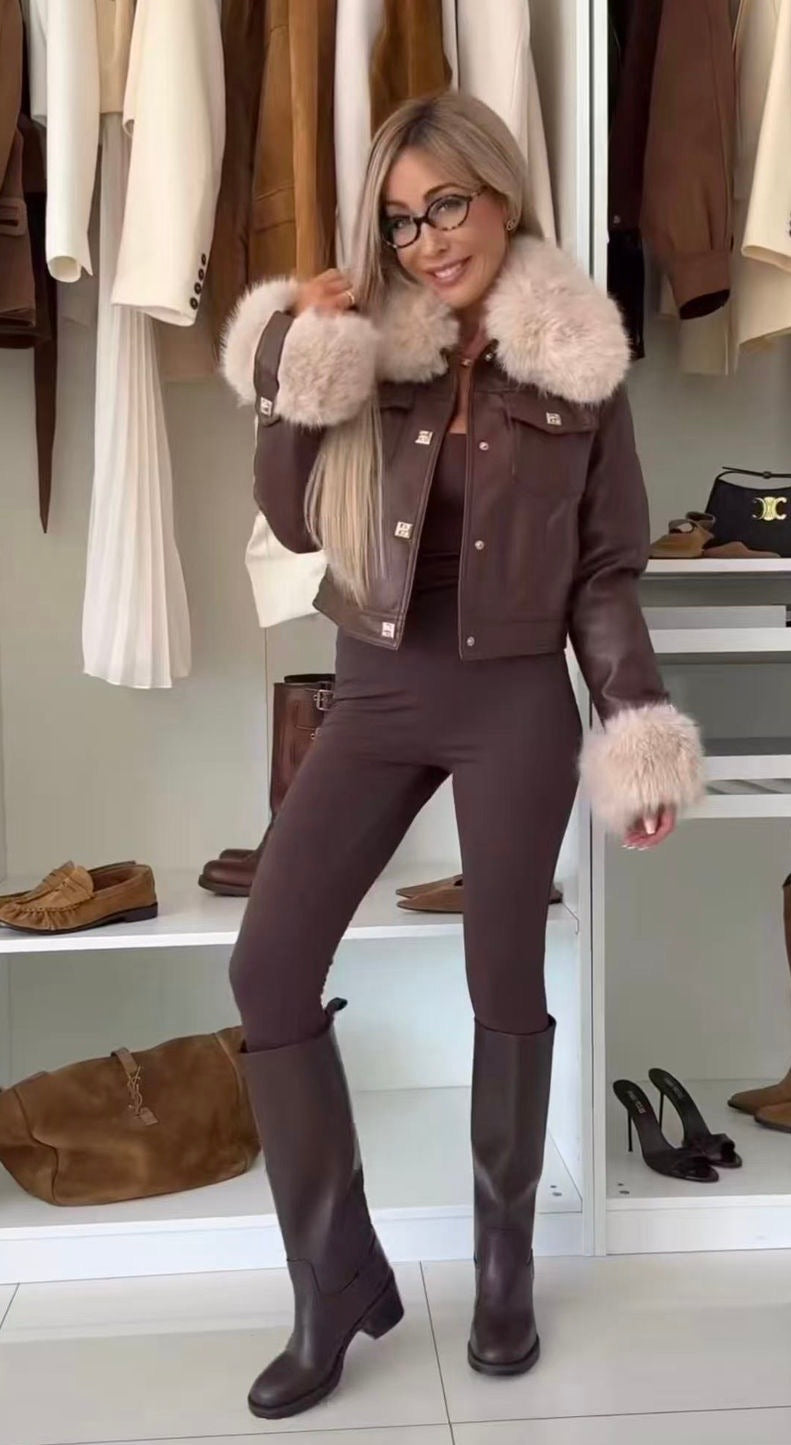 Aviadora de polipiel con interior forrado y detalles de pelito en cuello y puños desmontables