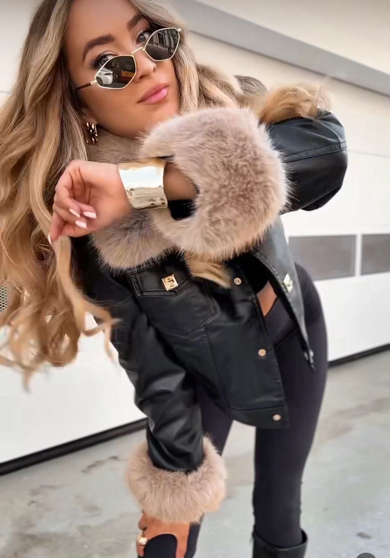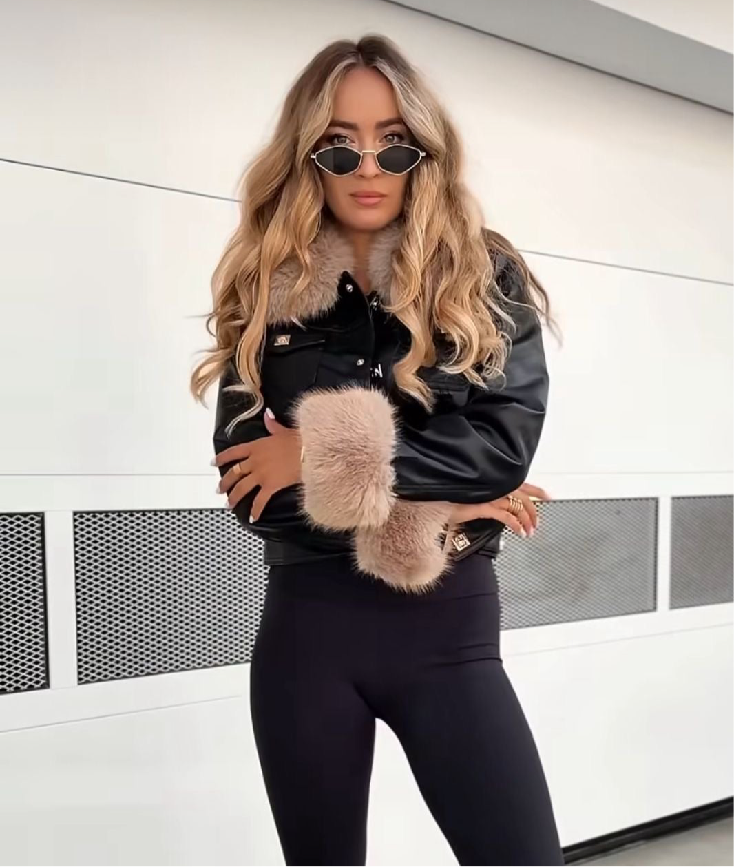 Aviadora Negra Pelito Beige