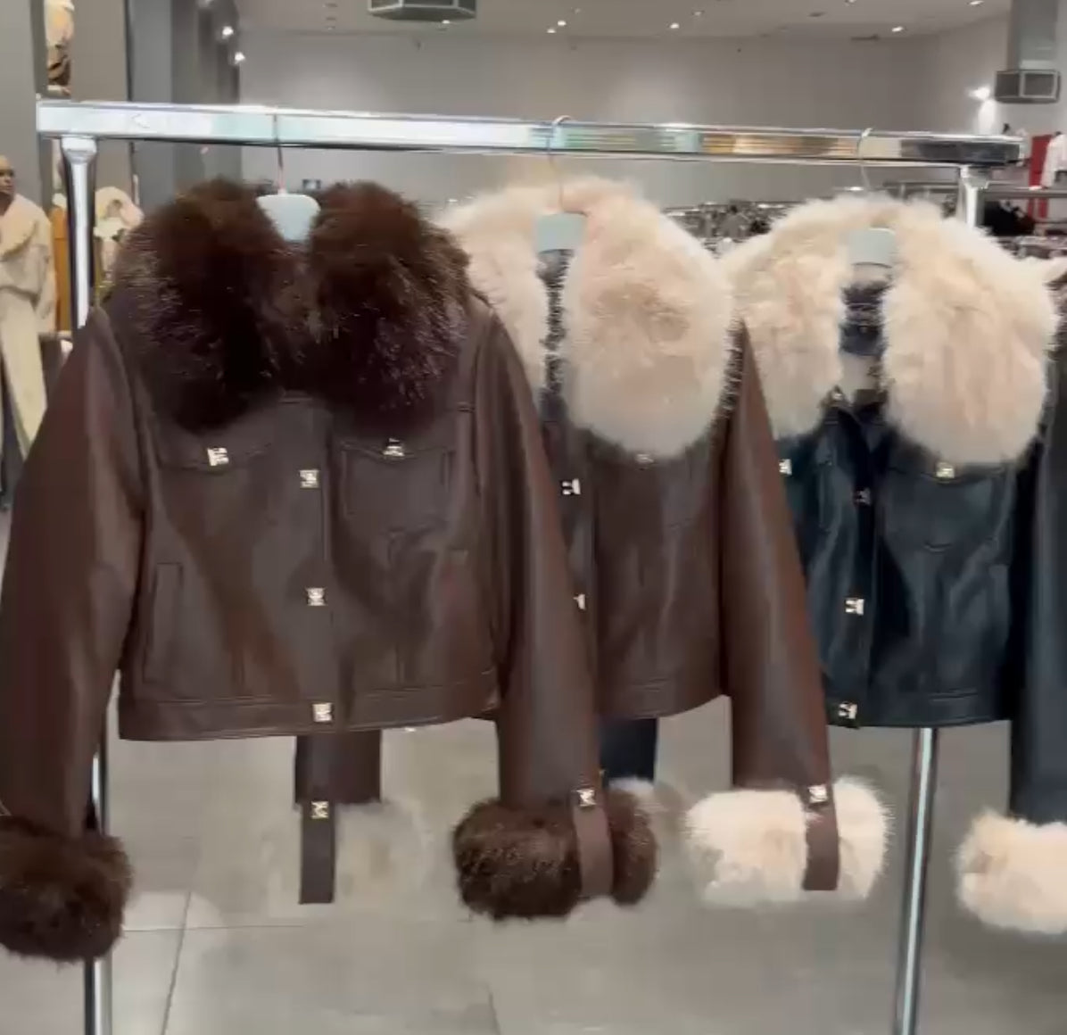 Aviadora de polipiel con interior forrado y detalles de pelito en cuello y puños desmontables