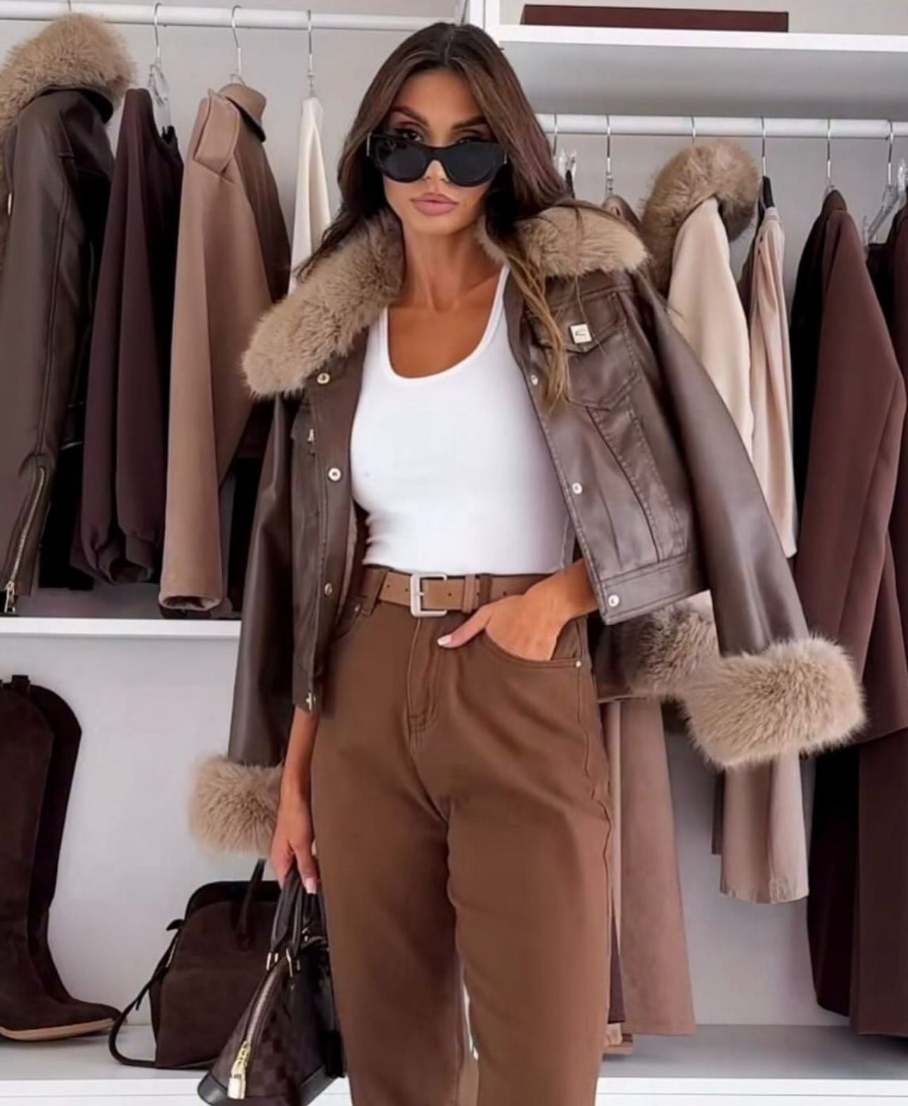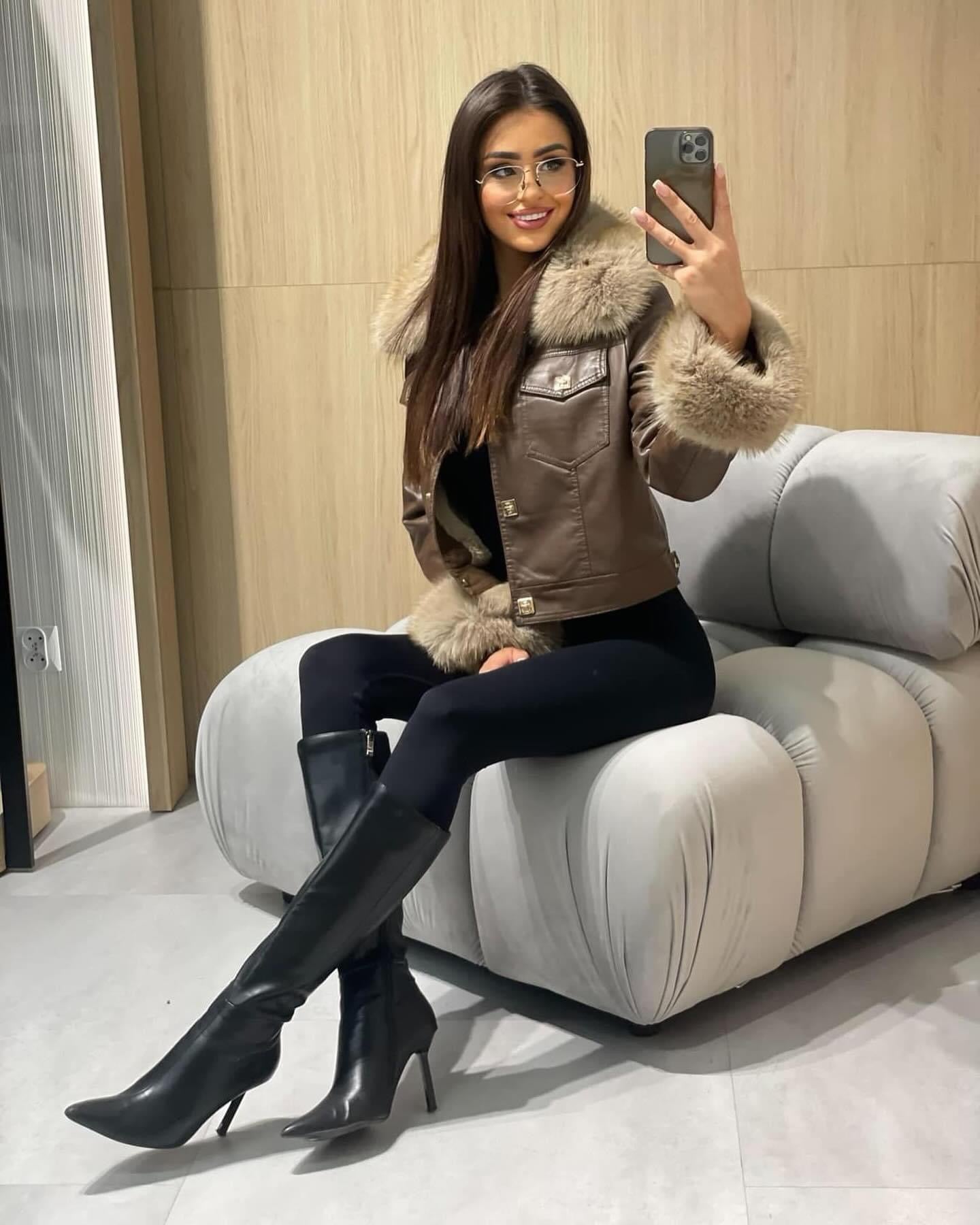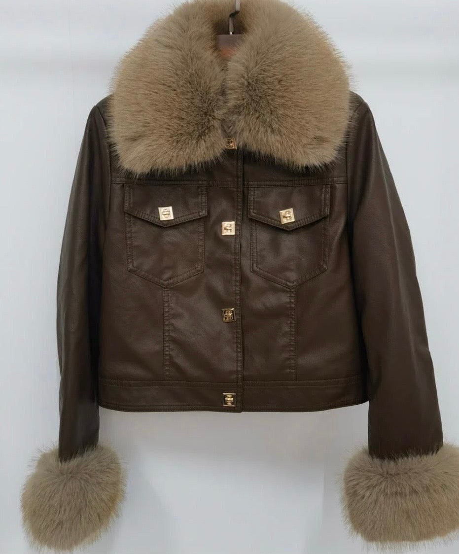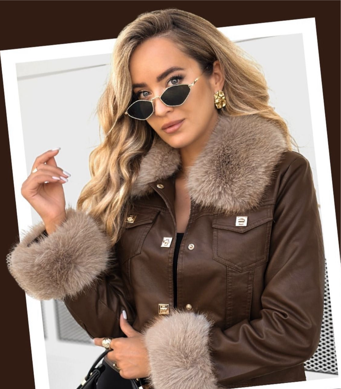 Aviadora de polipiel con interior forrado y detalles de pelito en cuello y puños desmontables