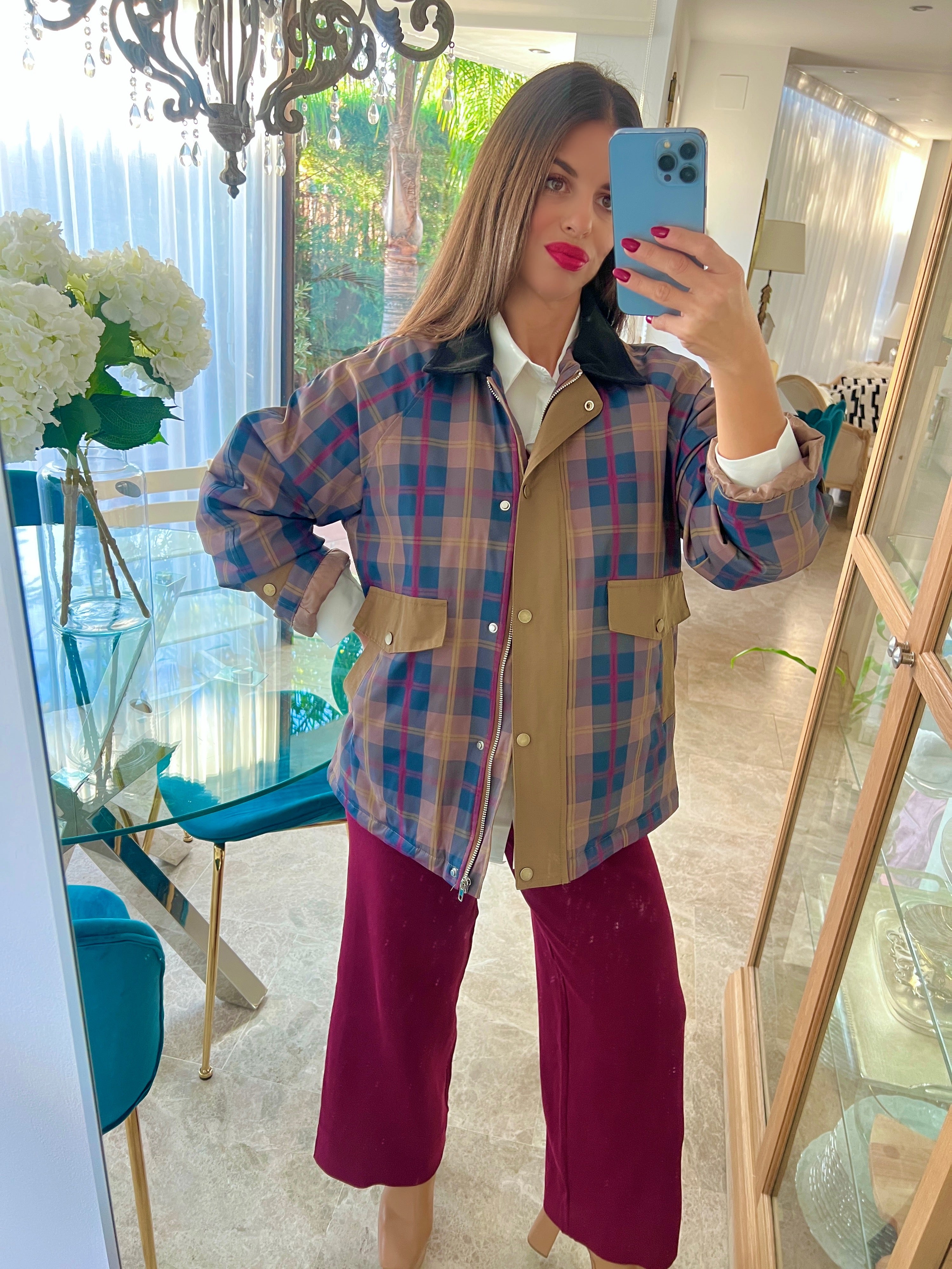 Chaqueta tipo barbour de cuadros con acolchado interior