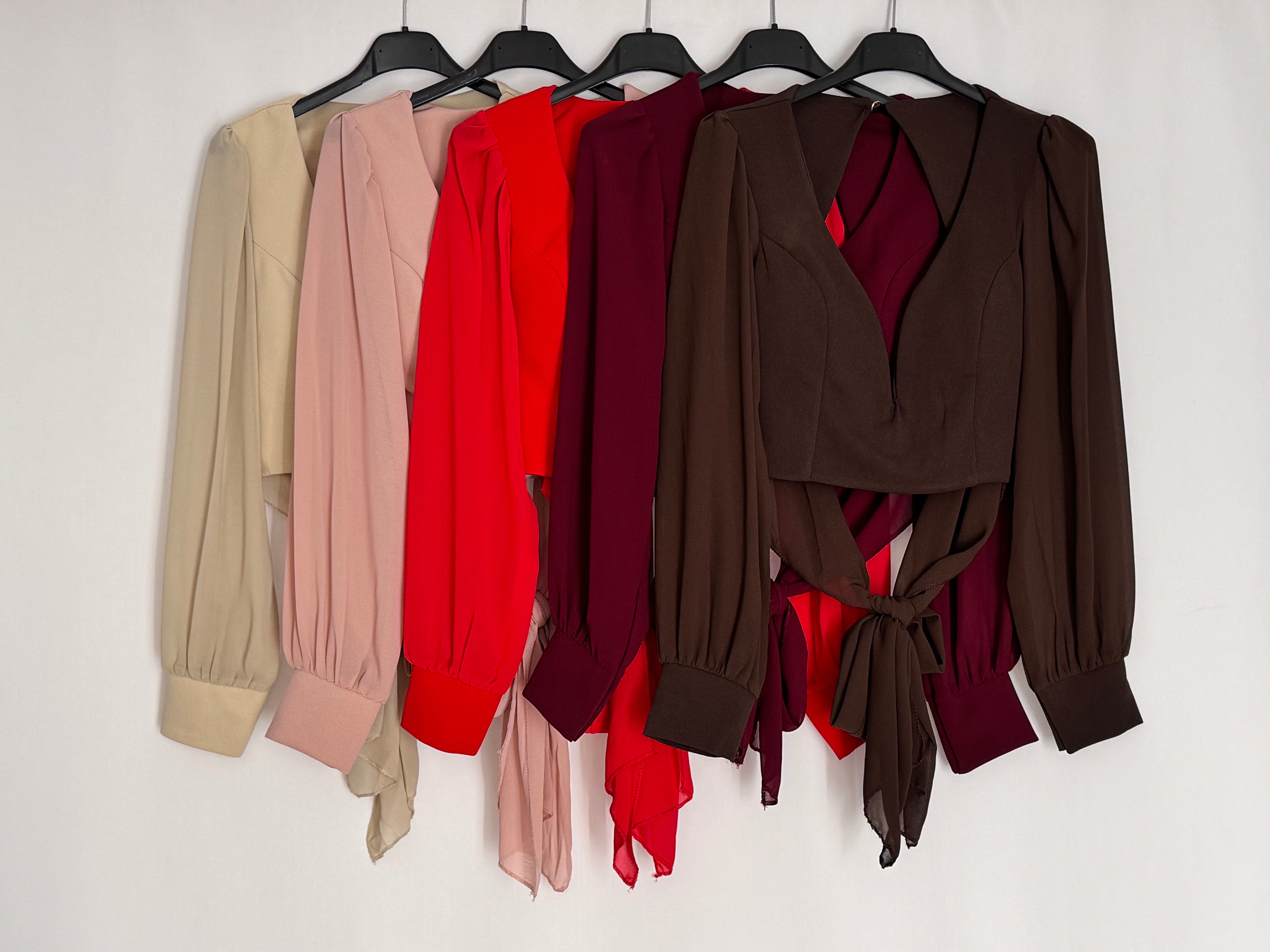 Camisa de gasa con escote en V y espalda al aire con lazada