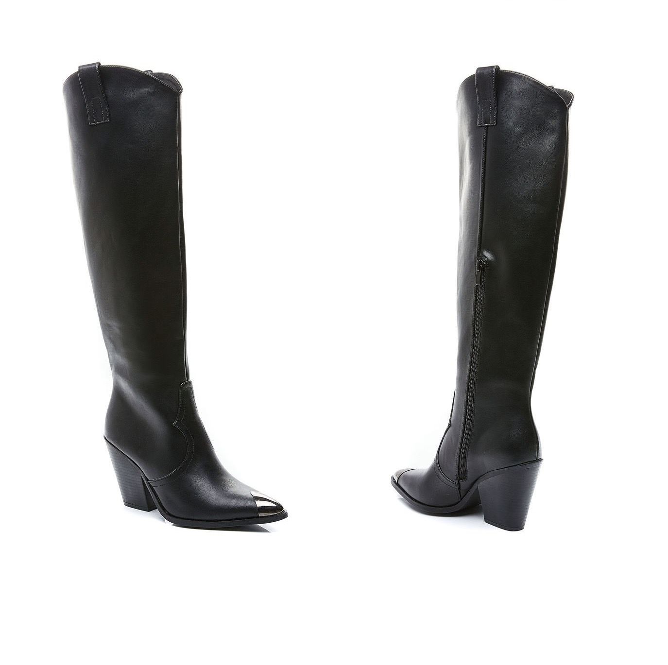 Botas altas de polipiel negras con puntera plateada y cómodo tacón cowboy
