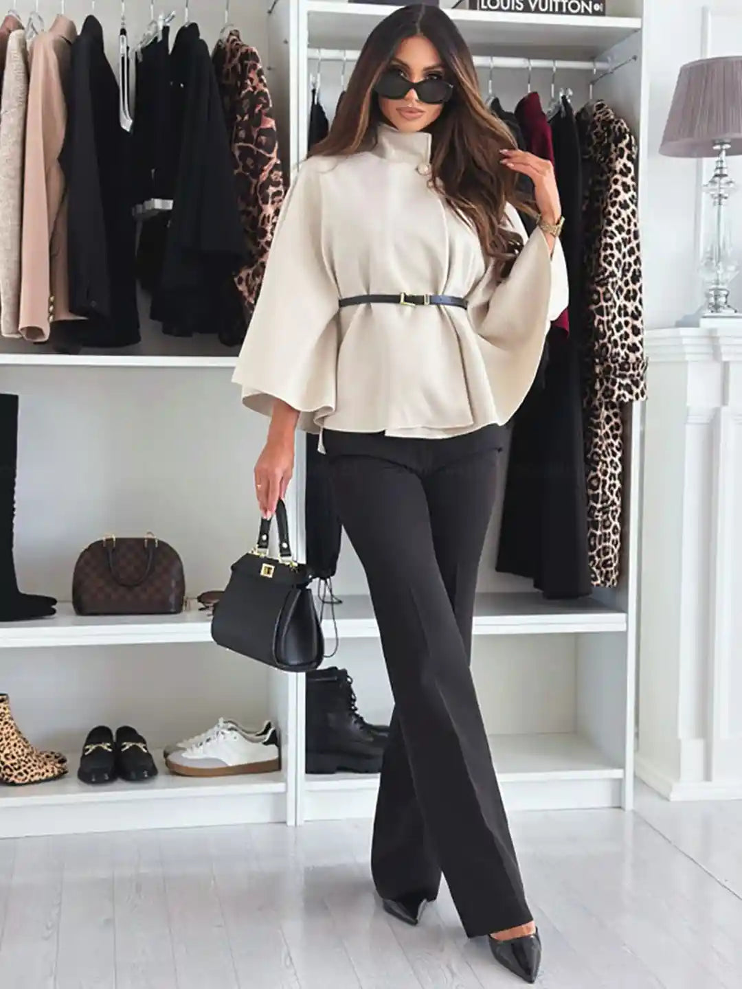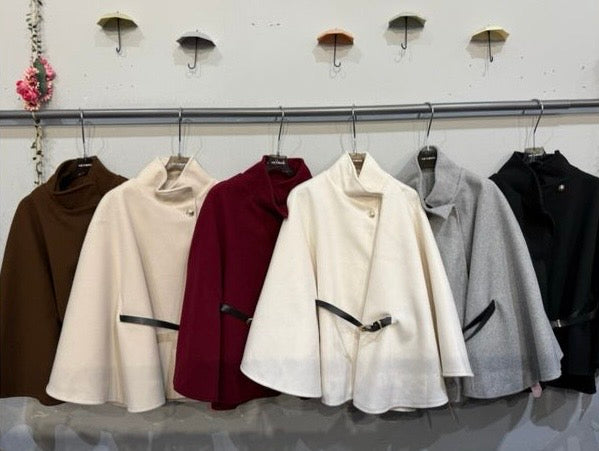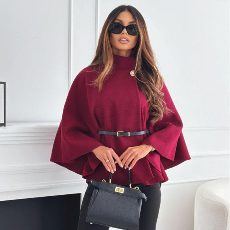 Capa de lana cruzada con botón y cinturón