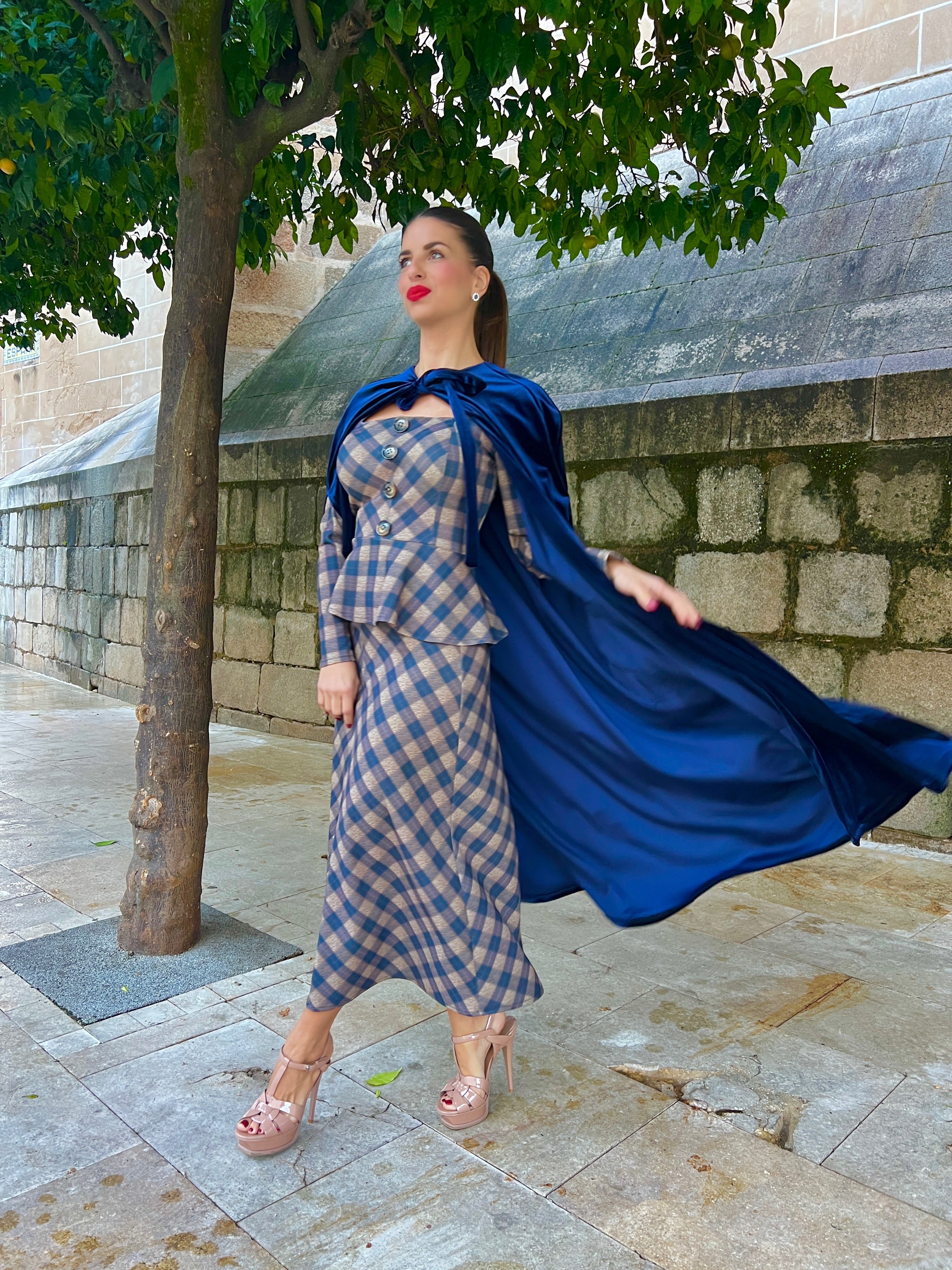 La capa queda aproximadamente a la altura del tobillo