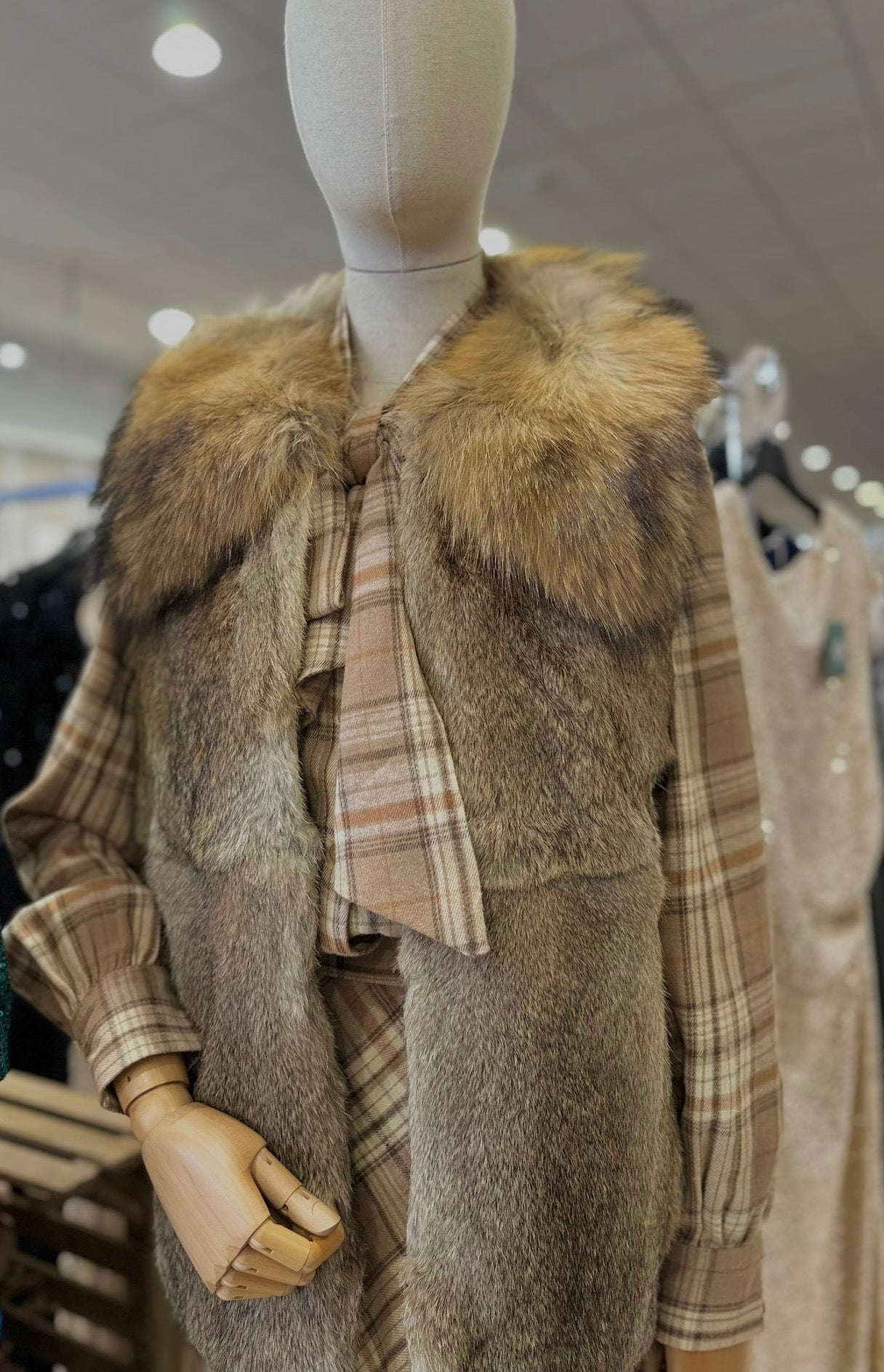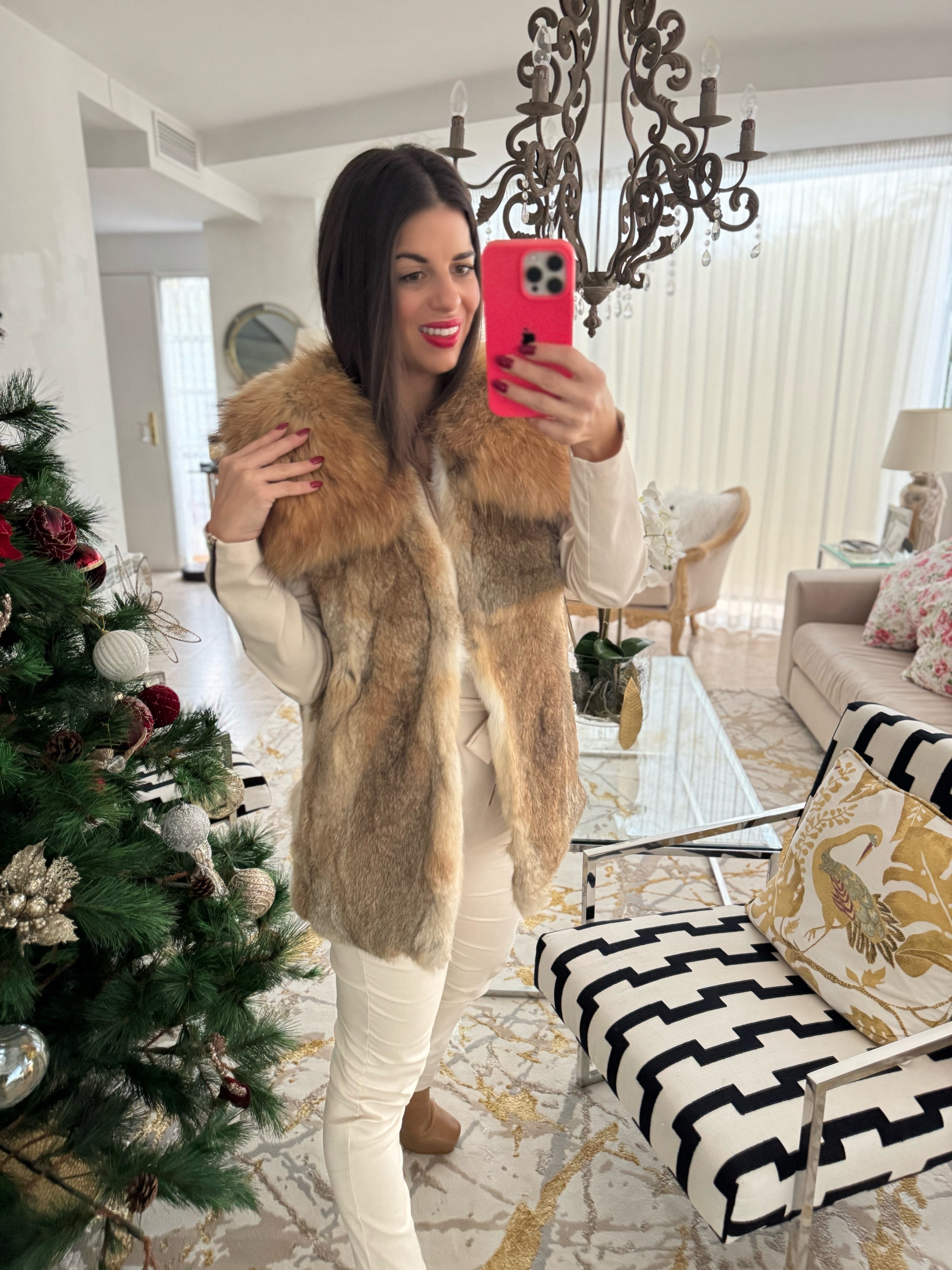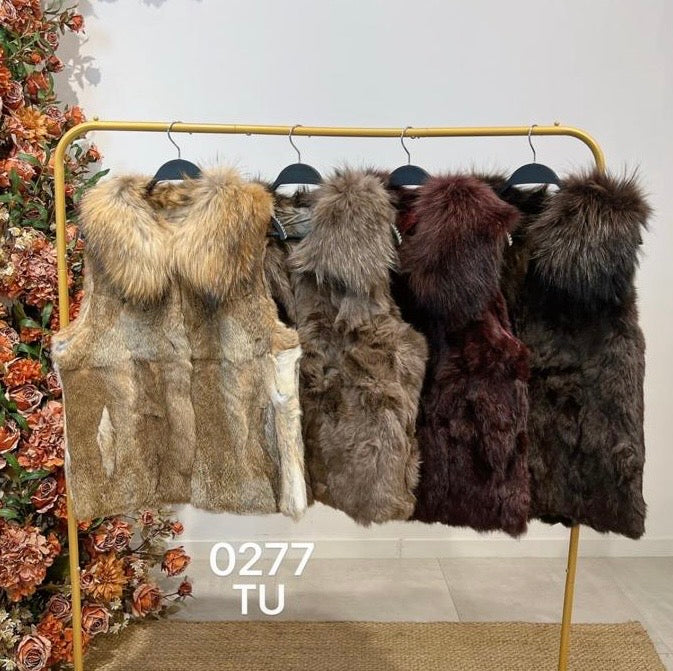 Chaleco de conejo con Maxicuello de zorro con bolsillos