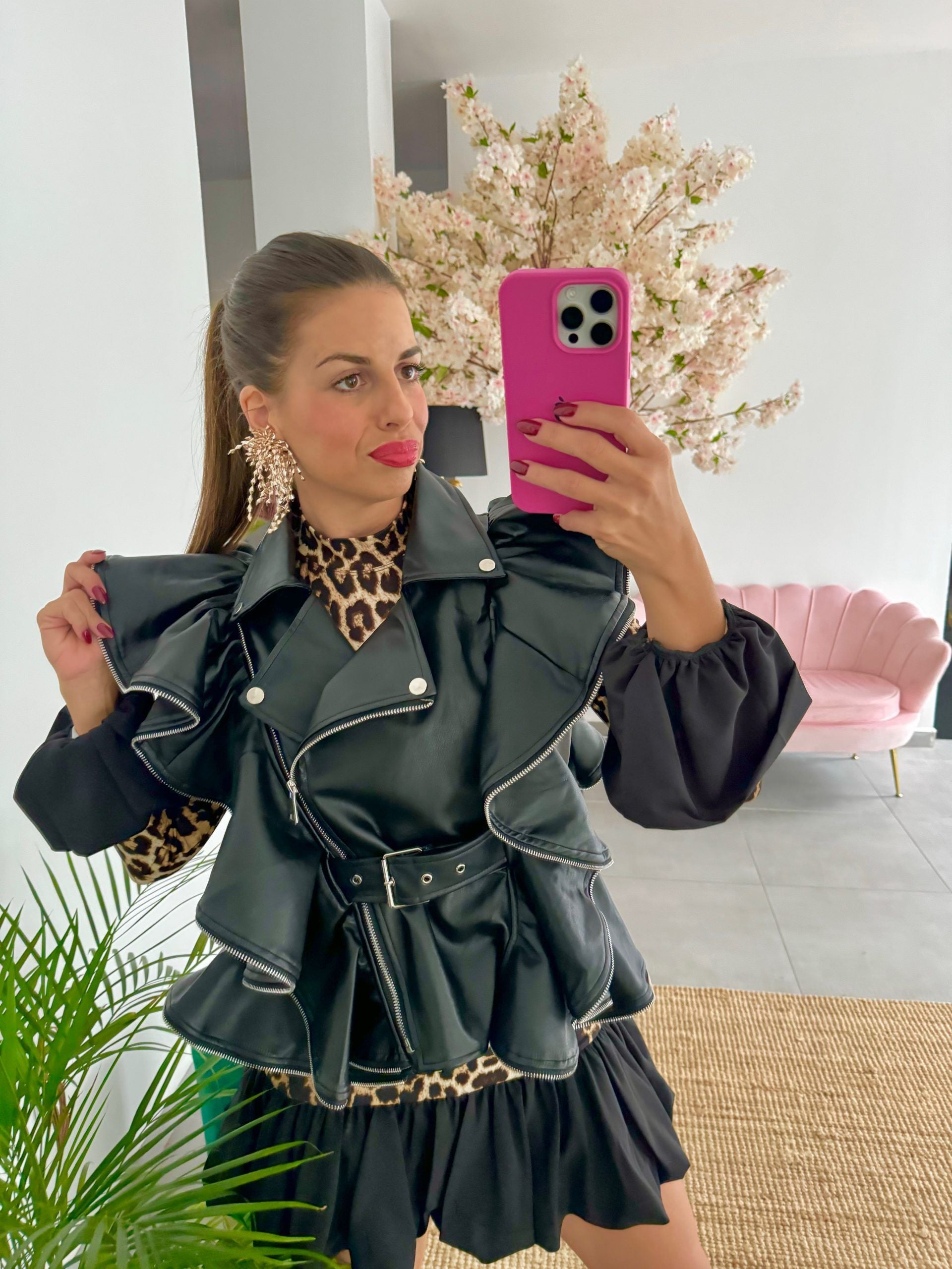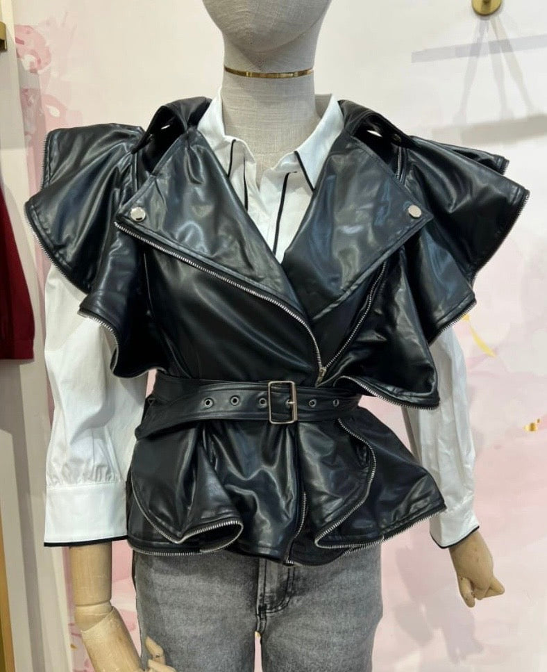 Chaleco de Polipiel negro con volantes en los hombros y cremallera lateral