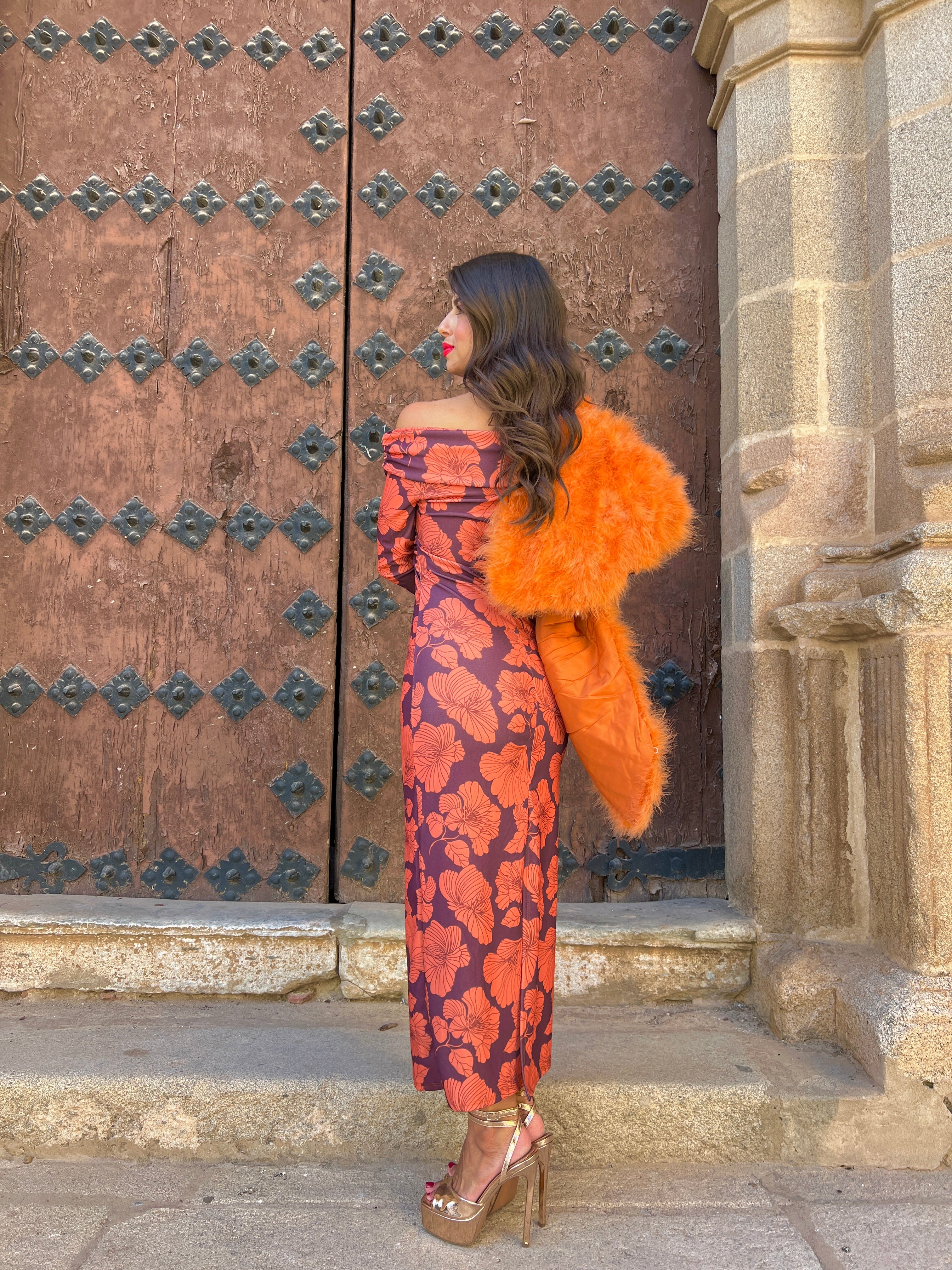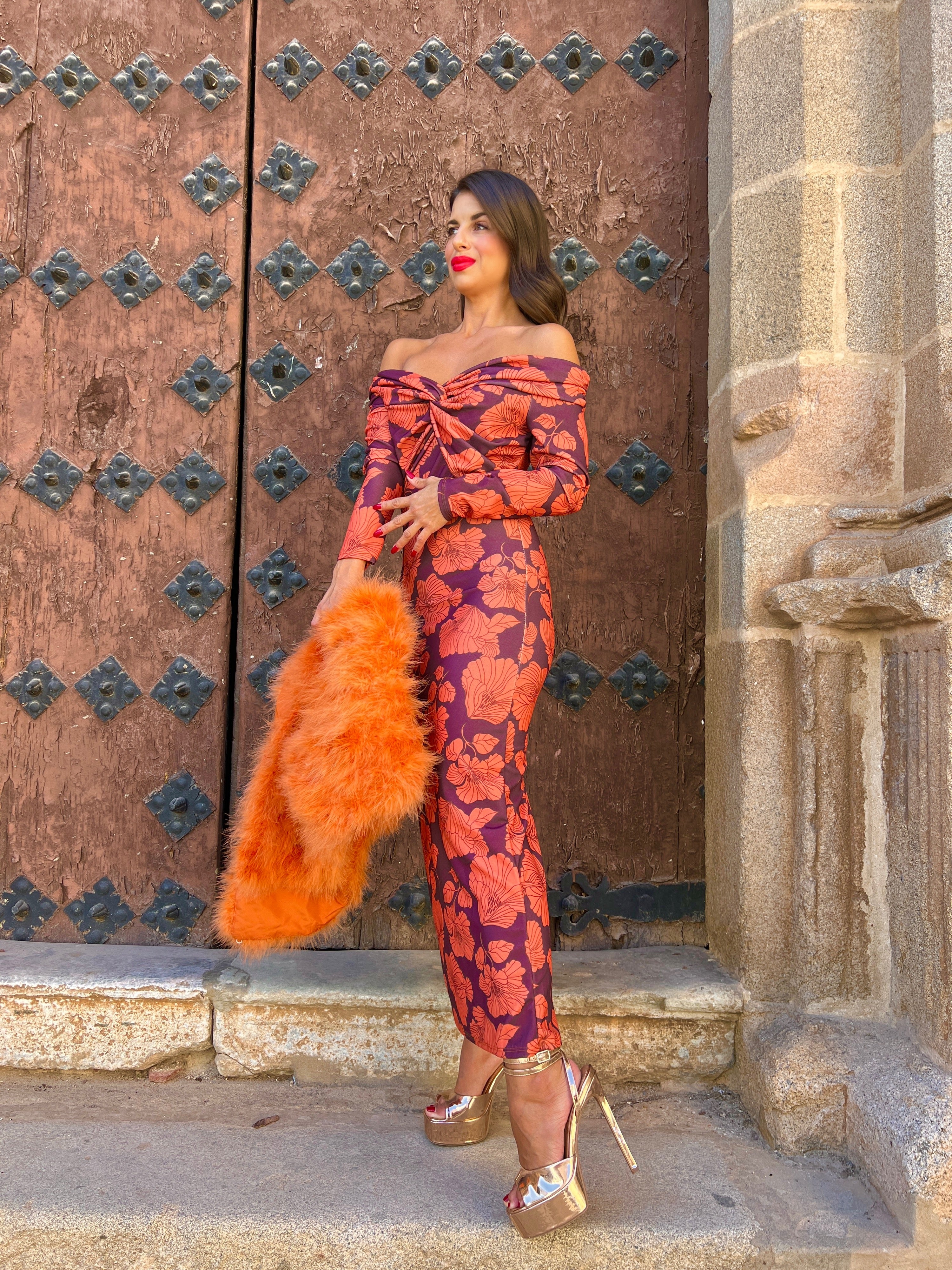 Estola grande de plumas naturales de marabú, forro interior satinado y broche central
