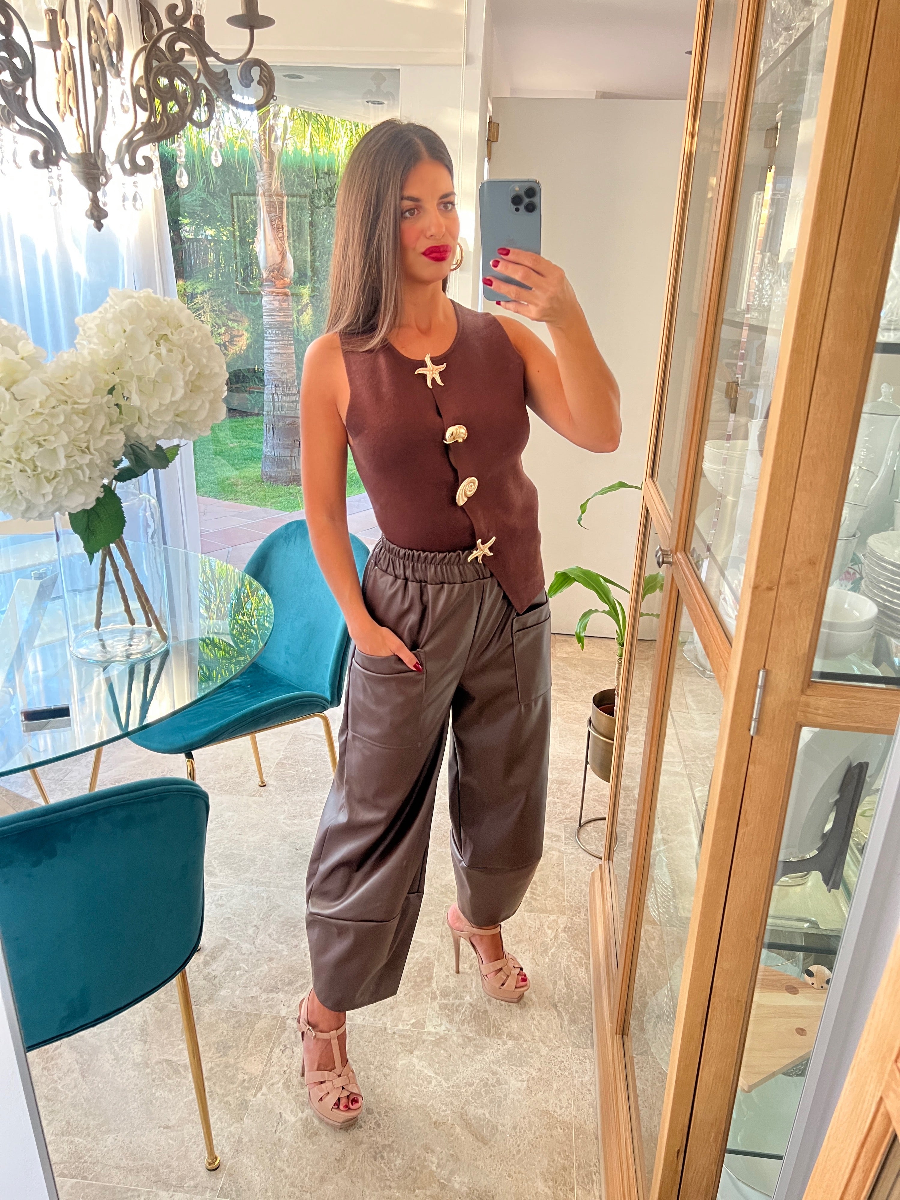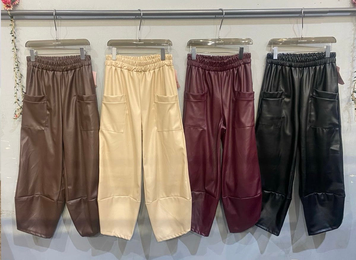 Pantalón Capri de polipiel con cinturilla elástica y bolsillos