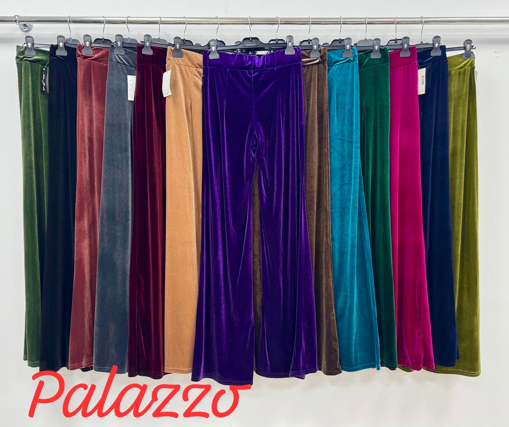 Pantalon de campana en tejido de terciopelo con cinturilla elástica