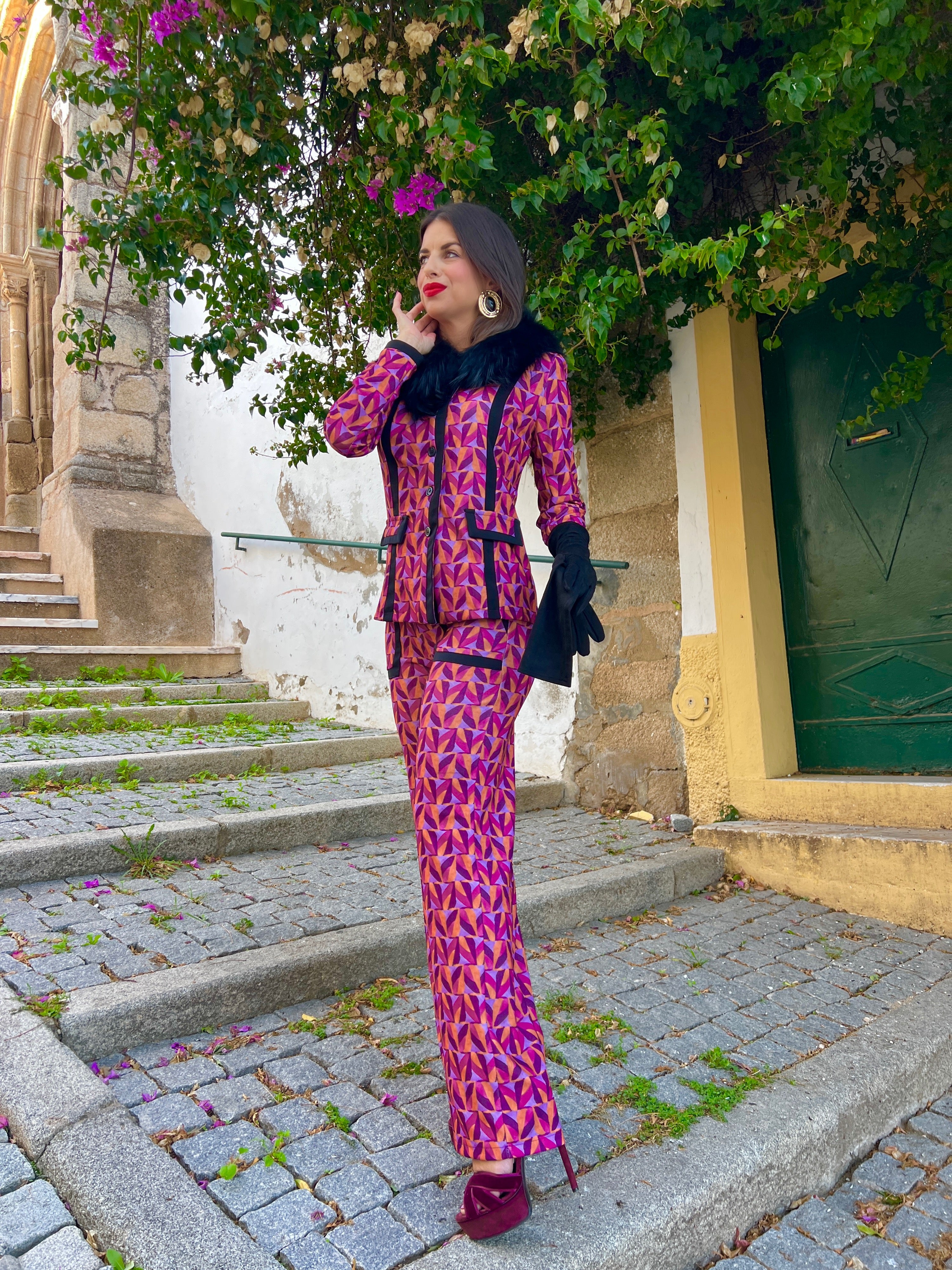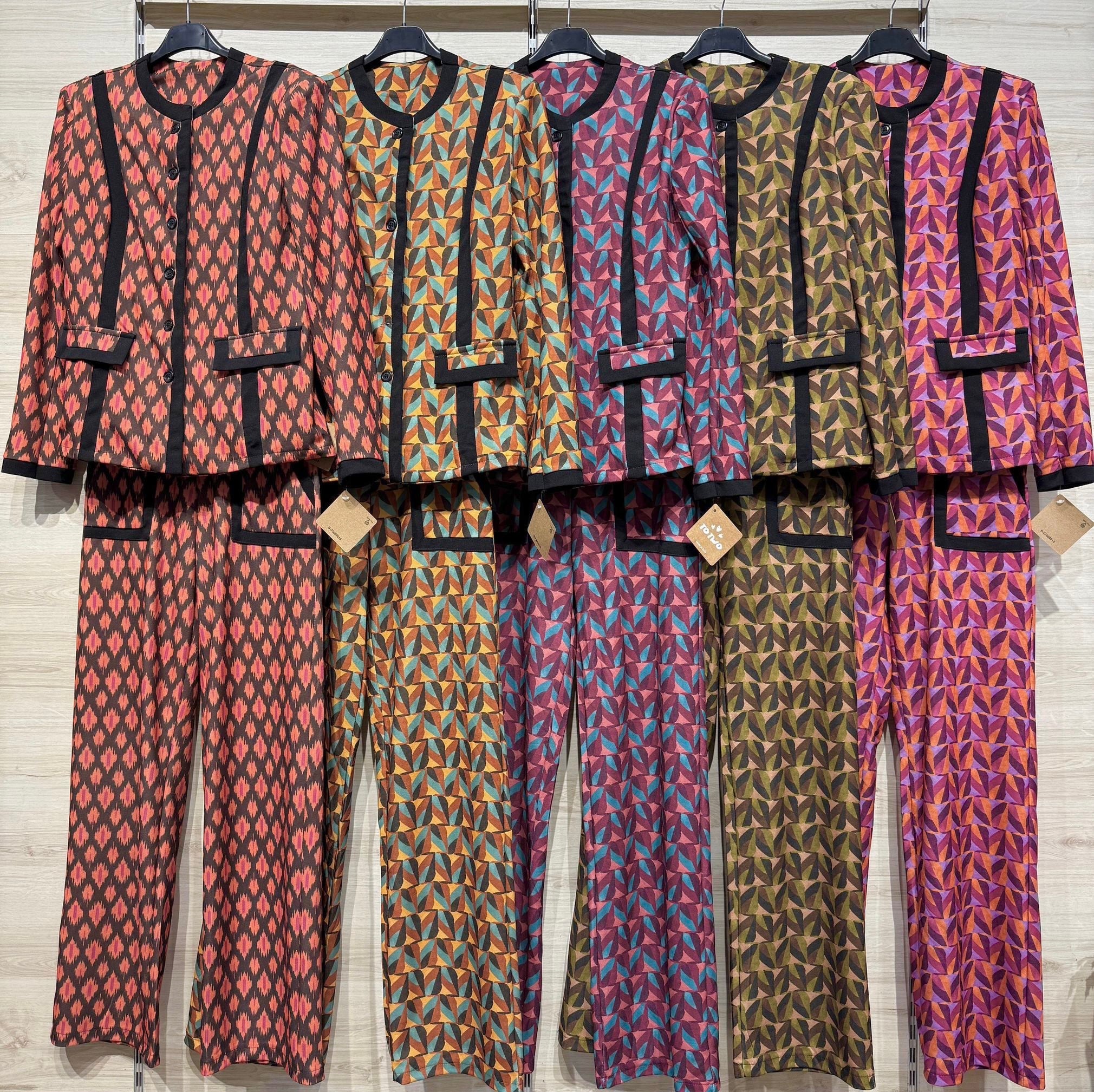 Conjunto en print geométrico de dos piezas formado por chaqueta abotonada y pantalón de pierna recta