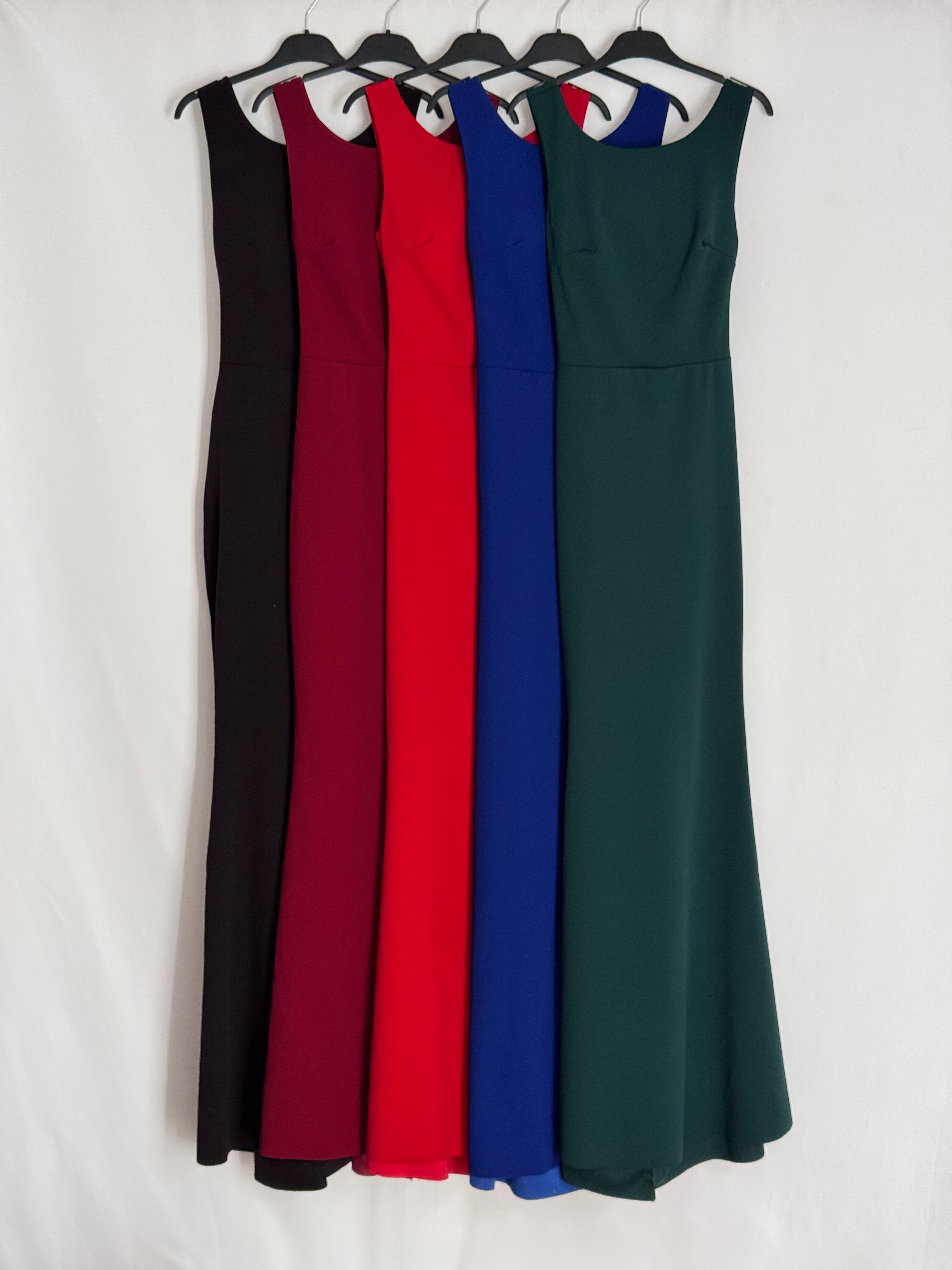 Vestido de elastham con espalda al aire y detalle de lazada en cascada con chorrera