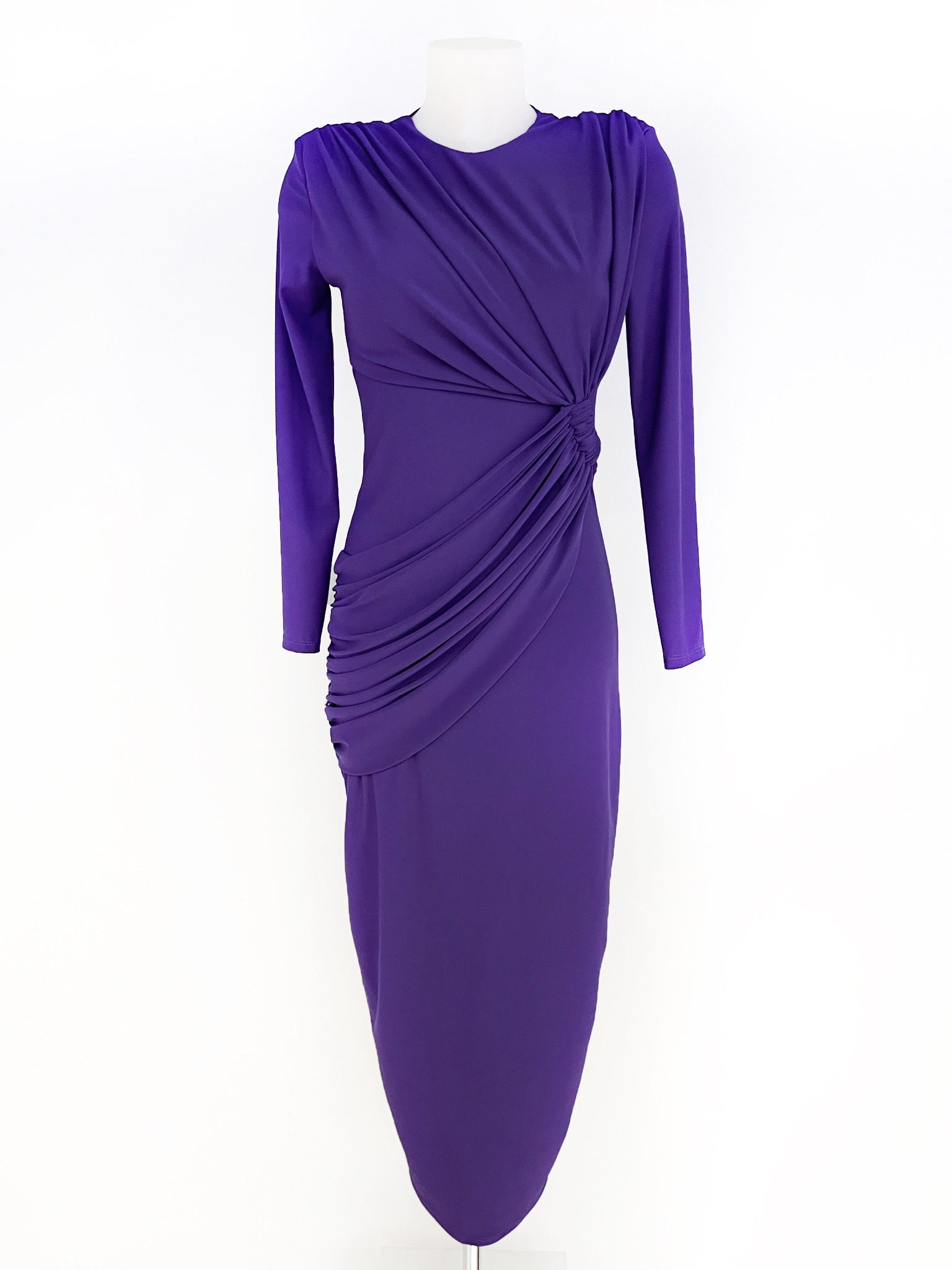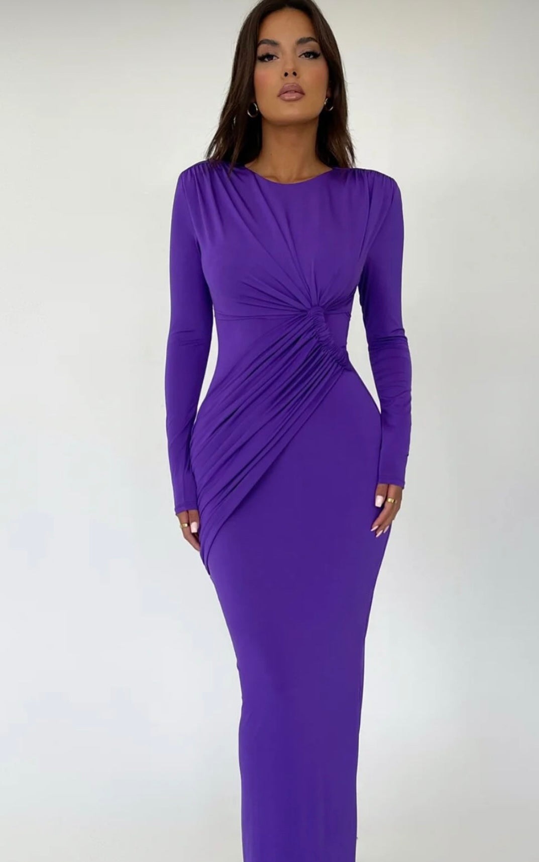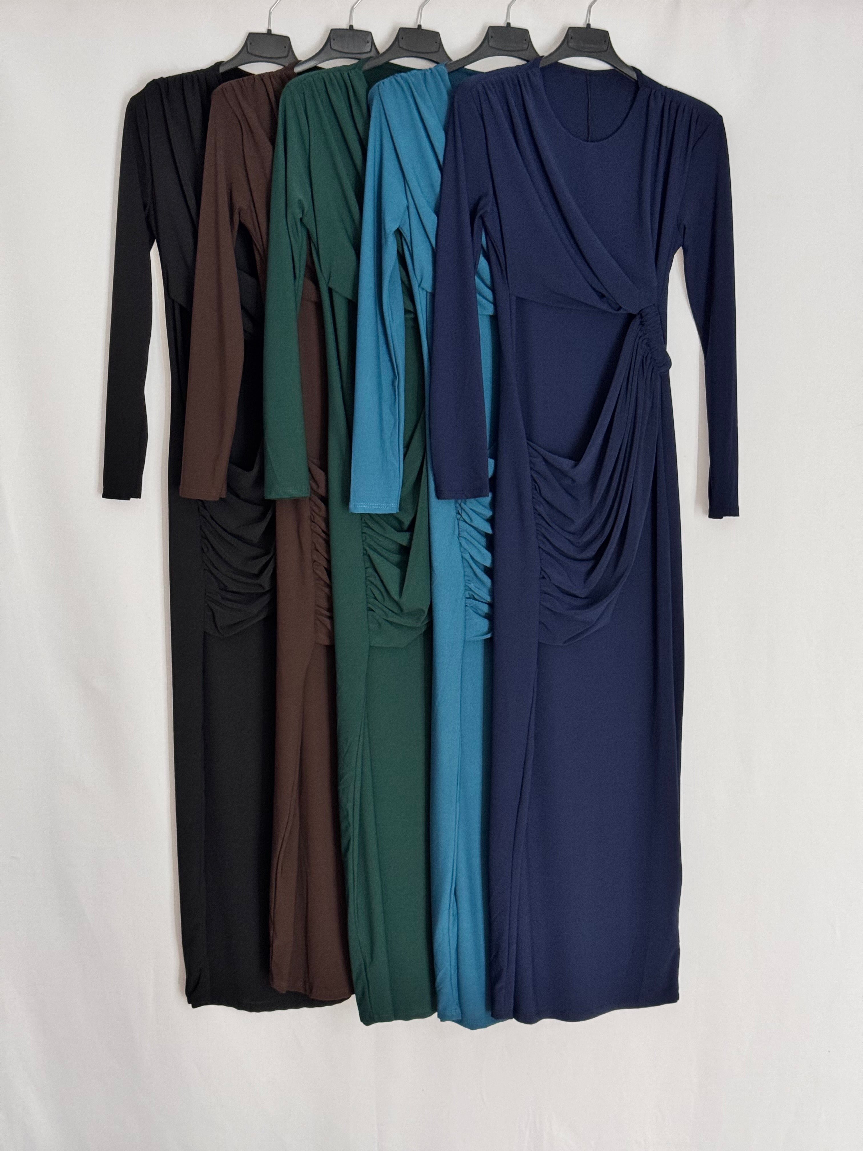 Vestido midi de elastham con drapeado delantero y nudo lateral
