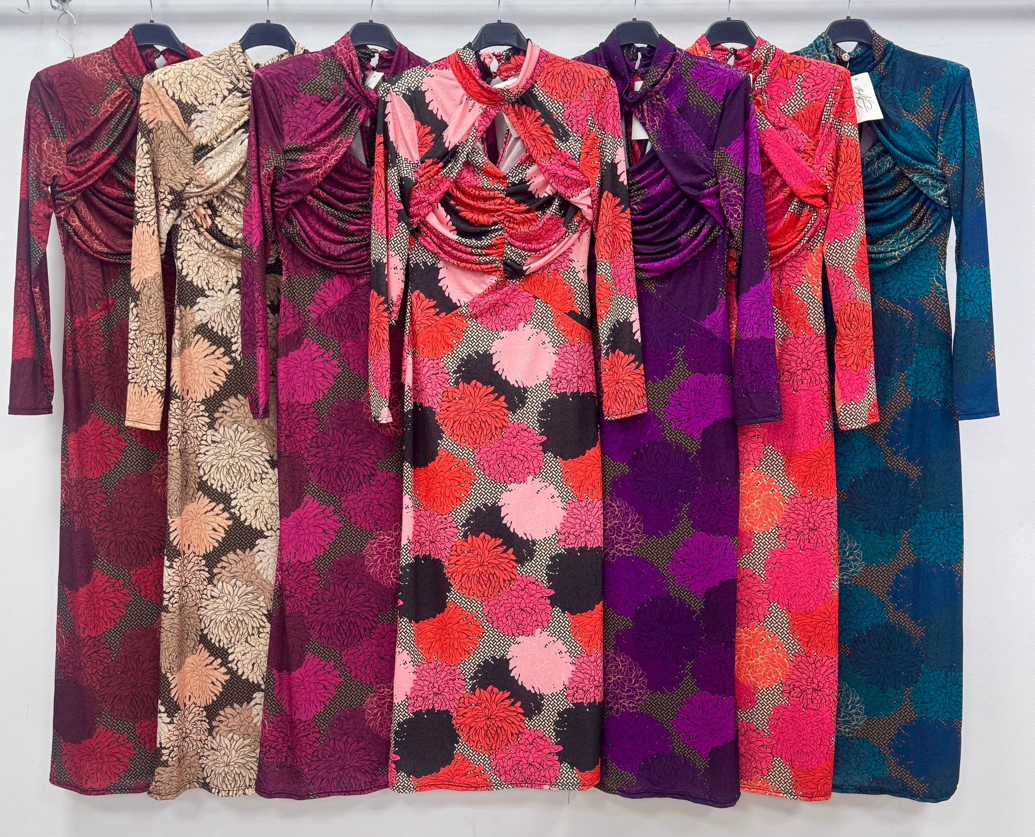 Vestido de elastham con estampado floral y escote drapeado en pecho