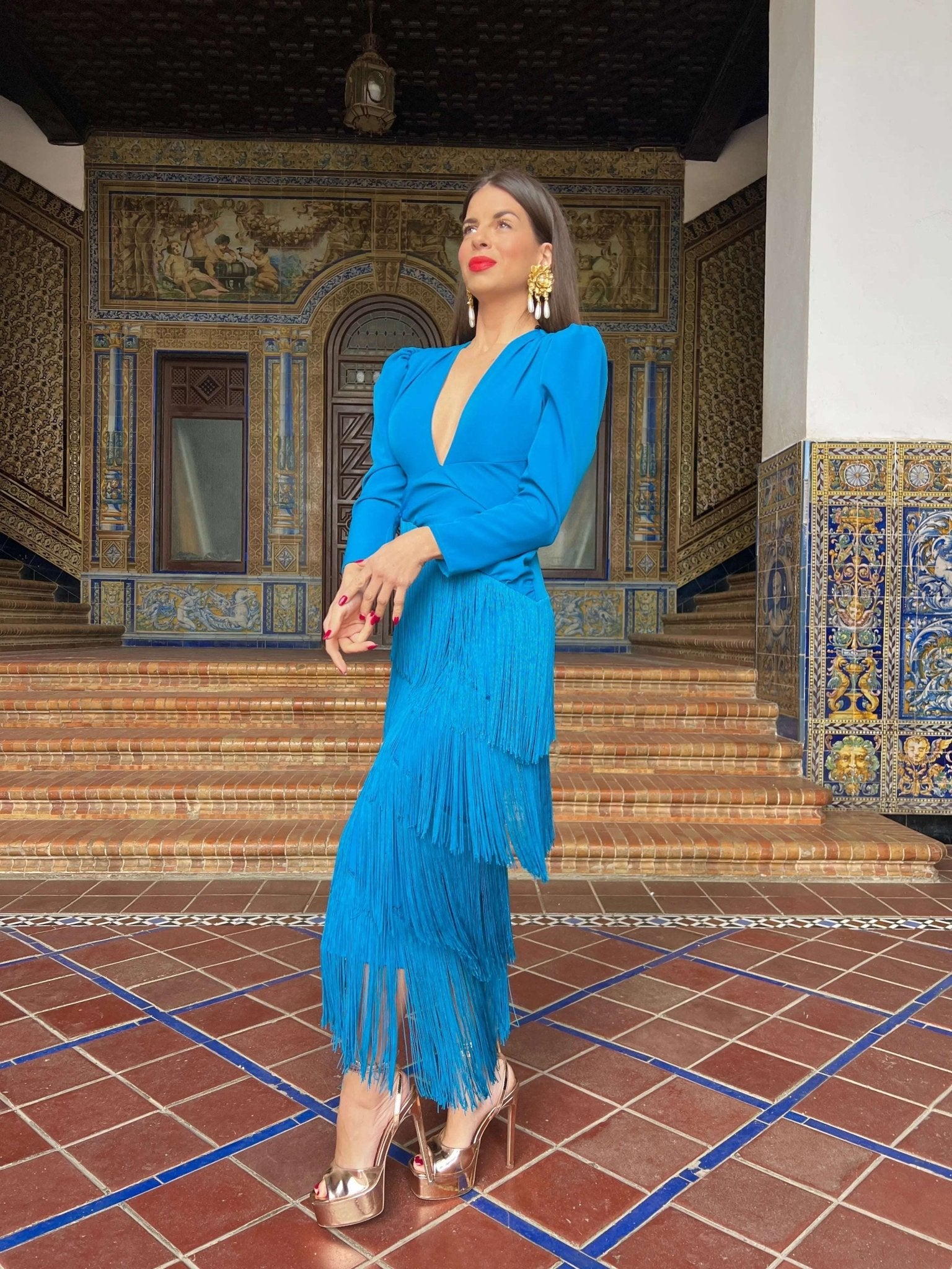 La falda de flecos de seda aporta movimiento y frescura, ideal para cualquier ocasión especial. Con una confección sin elasticidad y una cremallera trasera, está disponible en varias tallas: S-36, M-38, L-40 y XL-42. Perfecto para lucir radiante en eventos o salidas nocturnas.