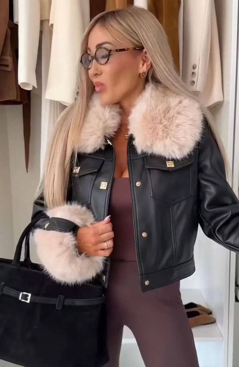 La Aviadora Negra Pelito Beige es una prenda de polipiel de alta calidad, diseñada para ofrecer estilo y comodidad. Su interior forrado proporciona calidez, mientras que los detalles de pelito en el cuello y los puños desmontables añaden un toque de elegancia y versatilidad.