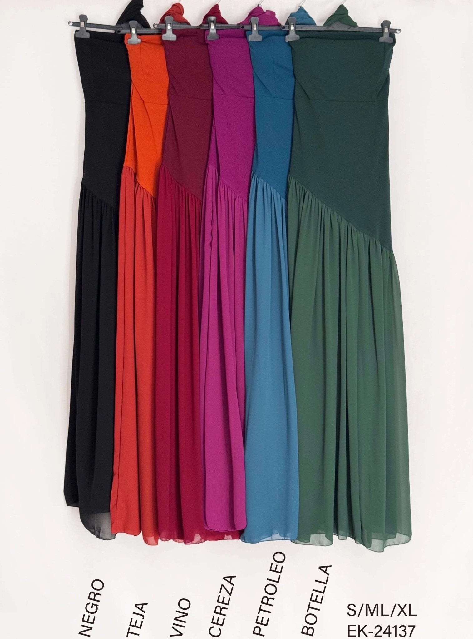 Descubre el Vestido Royal, una pieza única que redefine la elegancia. Su diseño en palabra de honor resalta la figura, mientras que la pechera de elastham proporciona un ajuste perfecto y cómodo.